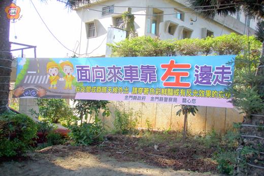 地區去(九十九)年度發生了四起行人於道路行走時不慎發生交通事故死亡之慘劇,縣警局為提醒行人注意行走安全,製作「行人面向來車靠左邊走」之宣導布條懸掛於地區民眾時常行走之路段,加強向廣大之路人宣導,提醒行人行走時,應走在人行步道上,在未劃設人行步道之道路,應靠邊行走,而且要靠左邊行走,以注意到來車動向,遇有狀況時可即早閃避以策安全。 縣警局表示,行人穿越道路時,在設有行人穿越道的地方,必須經由行人穿越道穿越;若穿越道有警察指揮或有燈光號誌時,依警察之指揮或號誌之指示前進。而行人夜間散步之地點最好是選擇學校運動場、社區廣場等,避免行走於主要幹道上,若真的迫不得已需要於夜間在道路上行走或散步時,除應靠左邊行走較為安全外,並應穿著鮮明衣物,同時善加利用反光飾物與照明工具,以提醒道路上其他用路人注意「有行人在行走」,而行人在走路、穿越道路時,更應專心,注意有無左、右來車再行通過,以策安全。偶而會從新聞看到公車等大型車轉彎時、啟動行駛時不慎壓到旁邊之機車、自行車或行人之報導。縣警局指出,這是因為大型車駕駛員於駕駛室內從後視鏡觀察左方、右方及前方時有視野上之死角,也特別要提醒駕駛員及停於大型車旁之機車、行走於旁之路人應當心。 縣警局也表示,行人在等候穿越道路時,為安全起見,不要靠近交叉路口處站立,因為當汽車轉彎時會出現內輪差,即內側後輪會向內側偏移,內輪差隨車身加長而變大,尤其是半聯結車更為嚴重,因為其全長較大客車還長,因此內輪差距特別大,其空間大到可容納一輛轎車,轉彎時半拖車後輪位置剛好又是駕駛人視野死角範圍,所以在聯結車轉彎時是很危險,可能後輪會壓到路旁等候通過道路的行人,用路人應特別留心注意。