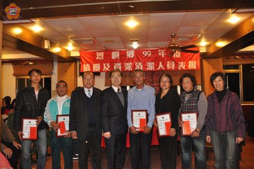 「大家辛苦了」,縣長李沃士昨晚表揚烈嶼鄉績優、資深清潔人員,肯定第一線環保人員所付出的努力和成果,慰勞大家的辛勞。李縣長也關心烈嶼離島就業環境,強調會在環保局、林務所的用人計畫,多多提供烈嶼鄉的資源和清潔人力,照顧離島居民的生活。 烈嶼鄉公所昨晚辦理清潔隊九十九年績優、資深清潔人員表揚活動,鄉長洪成發邀請所有清潔工、臨時工,共聚一堂餐敘,慰勞他們過去一年來為烈嶼環保工作所付出的辛勞。縣長李沃士也由縣府機要秘書楊忠強、社會局長方天吉、環保局長楊世宏陪同到場,為這些環保尖兵「打氣」。議員林金量、洪麗萍、鄉代會主席洪若珊、金防部副指揮官任季男、各村村長也參與活動。 李縣長和洪成發頒獎獎勵資深清潔人員洪永成、績優人員洪全正、林義評、陳素英、林秀雲,肯定他們的工作表現,為其他伙伴樹立學習的模範。 洪成發很感謝李縣長長期以來對於烈嶼鄉的支持和照顧,也考量到烈嶼鄉比大金門少的工作機會,也無相關的產業,在環保業務上提供很多的資源和支持,增加環保的人力,提供烈嶼鄉親就業的機會。洪成發說,公家單位有多少經費,僱用多少的人力,新年度因預算經費的問題,會有部份臨時工無法繼續就業,他希望這些人員心情要放寬,相信在李縣長以及環保局、林務所等單位的支持下,一定會特別照顧烈嶼鄉親。 李縣長很肯定洪成發用心推動鄉務工作,也肯定環保人員過去一年辛勤的維護社區和全島的環境,讓烈嶼鄉的環保業務有亮麗成果,保有「整潔烈嶼」的美譽。 李縣長體恤清潔人員的工作辛苦,他說,環保工作比其它工作還要辛苦,很多臨時清潔工一天只有八百元的薪資,如果還要到大金門工作,是很不方便,他說,議員林金量、洪麗萍也很關心鄉務和鄉親的就業機會,縣府會在議員的監督下,全力的配合鄉長洪成發的施政,也會在環保區塊多投入資源,未來,環保局、林務所爭取的用人計畫,一定會加強對於烈嶼鄉親的照顧。 建國百年即將到來,李縣長也向烈嶼鄉親拜個早年,祝福大家新的一年,心想事成。