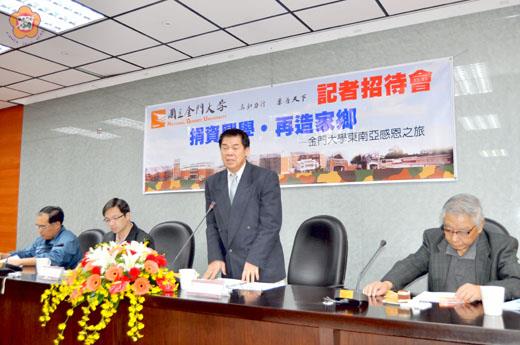 國立金門大學校長李金振日前率領學校一級主管,組成「東南亞感恩拜訪團」拜會僑親,傳達金門大學成立的喜訊,各地僑領共同分享成長的喜悅。其中新加坡僑領黃祖耀應允捐贈二千二百萬元新台幣、印尼僑領王振坤捐贈二百萬新台幣,金大昨日特召開「捐資興學、再造家鄉」東南亞感恩記者會,感謝僑領對金門大學慷慨捐助,做為校務發展之需。 國立金門大學校長李金振為了感謝東南亞金門籍僑領對金門大學創校以來不斷的捐助,並繼續尋求僑界的資助,特別率領學校一級主管,組成「東南亞感恩拜訪團」,於12月10日出發,前往馬來西亞、新加坡及印度尼西亞等國,除當面感謝僑領們對過去該校「改大」的貢獻與力挺,也向僑領簡報並請益現階段校務發展概況,並敦聘楊忠禮、陳開蓉、楊肅斌、張允中、黃祖耀、黃進益、陳成龍等重要僑領為校務顧問。 在行程中,所拜訪的各國金門籍僑領與金門會館主席與幹部,無不對金門大學發展給予高度的關心與祝福,並表達堅定支持之意,其中最令拜訪團感動的是,新加坡大華銀行集團主席黃祖耀當場同意捐贈金門大學新加坡幣一百萬元(約折合台幣2200萬元)。 金大訪問團一行首日抵達柔佛州金同廈會館拜會總會長拿督陳成龍,陳成龍拿督於會場當眾正式宣佈捐贈金大新台幣貳佰萬元,並舉行捐贈儀式,校長也頒贈感謝狀,並敦聘拿督陳成龍為金門大學校務顧問。一行折返吉隆坡抵達丹斯里拿督斯里楊忠禮所經營的萬豪酒店,並於預約的時間會見楊忠禮博士,李金振校長與貴賓們暢談金門大學未來發展的方向,也與拉曼大學未來的合作與交流有了初步的商談。會後,李金振校長代表金門縣長李沃士及金酒公司董事長李清正致贈金門陳高及面膜給楊忠禮博士,並頒贈感謝狀,以答謝楊博士歷年對學校的慷慨捐助,並敦聘楊博士及夫人陳開蓉女士為該校校務總顧問,敦聘丹斯里楊肅斌為該校校務顧問。 李校長特別強調金門大學雖僅籌備13年,但是金門大學的誕生,其實淵源於854年前的燕南書院,所以在揭牌典禮當天,就追贈了歷代的44位金門進士為傑出校友,這是金門大學的驕傲。學校成立以來,一直受到金門縣政府及議會的支持,捐贈土地及校務基金累積新台幣九億元,改名大學後,馬總統又給予金門大學最需要的一百名教師員額,未來將增設護理學院、設計學校而發展為具有五個學院的大學,現在的學生有80%來自台灣,20%為金門本地學生,學生素質很好,畢業後多能考上其他國立大學碩士班或博士班。 李金振拜會雅加達金門互助基金會,除了與鄉親們會面,也特別感謝黃進益總主席,為國立金門大學所捐助的七百餘萬新台幣。金門技術學院今年8月1日,正式揭牌改名為國立金門大學,海外鄉親對學校的資助功不可沒。雅加達金門互助基金會副總主席王振坤也當場向李金振校長表達:「金大有成,我不缺席」,願意捐贈國立金門大學新台幣貳佰萬元,作為校務發展之需,且表達他飲水思源報效故里的心思,並希望旅居印尼的金門子弟能有機會回家學習華語,學成後可以回印尼貢獻所學,對金門大學的捐獻是他「來自社會,回饋社會」的一貫想法。 李金振在矚目的記者會中表示:我們看到很多僑領都是第二代、第三代華人,他們重視教育,在家也說華語,到海外也接受華人教育。他也指出這次到雅加達時看到一個村莊,整個村莊的華人全部都不會講華語,是一群講印尼話的中國人,讓我感觸良多,如果沒有很好移民政策,華人出去就是淪陷,而很好移民政策也需要有好的教育政策配合,這個教育政策配合是讓移民華人永遠是華人力量的延伸,所以今天要開華人境外專班,當然要具有華人背景,這並不是金門大學招生不足然後招生僑生來補不足,因學校新生報到率達到101%,整個動機就是是因華人在外地因素有感而發,這個背景讓金門大學要站出來,並和南洋連接在一起,金門大學大本營算是一座發電廠,可以把電線連接到各地僑界,讓各地僑界能和僑鄉直接聯繫。我們也把華僑子弟送回金門受教育,他們回到僑界就是種子,可以把在金門大學所受的華人教育播種到各僑居地,這就是種子球員,這部分學校是朝這個目標來做,同時鼓勵我們的學生有機會到南洋實習,看看僑界開開眼界,這也可拓展我們的學習空間,是雙軌並進。