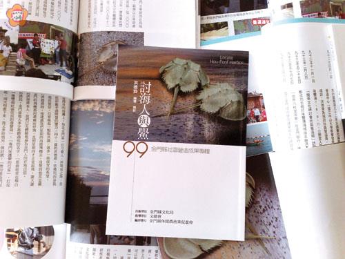 「討海人與鱟」專輯出版了!金門縣文化局社區營造點以鱟為主題,除了棲地保育宣導外,還有文化創意體驗活動、漁民文化洗禮、漁業文化博物館、地方美食品嚐等等活動,對鱟的習性與文化創意產物作了許多創新,相關成果並出版成「討海人與鱟」專輯,述說著守「鱟」的故事。 金門縣文化局指出,以鱟為主題的社區營造點推動,在諸多文化創意體驗活動中,像傳統紅龜糕也有鱟的模型、鱟的麵包、彩繪鱟殼、虎投標等等許多相關創意。小朋友彩繪鱟的虎頭形狀,是傳統避邪物,掛在門楣上是地方特殊文化現已失傳了。而相關成果並已出版成「討海人與鱟」專輯。 金門縣文化局指出,閩南語中的校長猶如鱟,夏天大潮時來到海邊「相鱟」,就是抓鱟,成為村民一種運動,退潮時到蚵石邊去抓來不及游出去或被攔網,卡在淺區水區的鱟都有。鱟是節肢動物的一種,它的身體可區分成頭胸部、腹部和尾劍三部份,就因為它的頭胸部形狀很像馬蹄,因而英文將它稱為 horseshoe crab(馬蹄蟹)。 金門縣文化局表示,鱟的腹甲形狀如虎頭形狀,經彩繪成老虎頭的圖騰高掛在門楣上面,據老者說有避邪的功用,是真是假見仁見智;經過彩繪的虎頭栩栩如生,的確有像老虎的威嚴讓一些牛鬼蛇神不敢靠近,雖然現在多當作藝術品看待,真正要發揮作用是在古厝建物房子落成時候,屋子內外作淨化儀式在金門做為「奠安」,請駐當地廟宇神明與乩童啟乩儀式,配合道士做法安宅儀式才算大功告成。 除了文化局推動文化創意體驗外,浯江溪鱟巡守隊參與棲地巡視工作,於建功嶼誠實堡為遊客解說鱟的一生與分送簡介,將閒置空間作最佳利用,一連串活動在金門縣文化局指導下,由休閒農漁業促進會所屬浯江溪鱟巡守志工隊完成一系列活動。