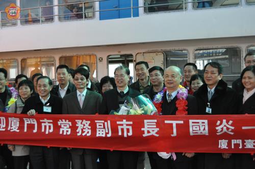 廈門市副市長丁國炎昨日率同考察團一行循小三通來金,將參與兩岸投資、金融座談,今(十九)日將搭機中轉赴台考察、交流。金門縣長李沃士昨日上午也前往水頭碼頭迎接,並就兩岸交流和市(縣)政發展交換意見。 記者許加泰/金城報導 廈門市人民政府常務副市長丁國炎率貿易、招商投資、金融等部門主管來金交流,昨晚,並和金門縣長李沃士、縣府主管以及金融業界座談。縣長李沃士表示,兩岸金融業務還有很大推動的空間,透過交流機會,創造出更多合作的空間,讓兩岸企業受惠金融業務的開展,也對於兩門發展,帶來更大的活力。 縣長李沃士率縣府財政局長黃景舜、交通旅遊局長林振查、建設局長葉媚媚等主管以及工策會總幹事蕭永平、金酒公司副總經理張國原、土銀金門分行經理張雲盛、土銀金城分行經理李水朝、金門信合社理事主席陳松泉以及台灣銀行、兆豐銀行、元大銀行主管,和丁國炎一行人,共聚一堂交流、座談。 李縣長指出,透由兩門相互的交流,汲取很多寶貴的經驗和意見。他說,這幾年來,廈門市的經濟建設是突飛猛進,金門相對慢了太多,兩岸金融業界共聚一堂,期望透過交流和金融合作,帶給兩岸企業界更多的幫助,讓兩岸企業受惠金融業務的開展。 李縣長也以過去人民幣的兌換,是在金門先試先行小額的兌換業務,他說,當時人員旅遊的過程是以二萬元人民幣兌換為限,從金門做起、逐步拓展到台灣,但比較可惜是後續發展到大額的匯兌,卻由兩岸更高層級的金融機構做主導,台灣是中央銀行、大陸是中國人民銀行,金門是空白,是很可惜。 李縣長認為以目前金門地區需求的人民幣,必須從台灣提領過來;台灣需要的人民幣,香港提領到台灣銀行和兆豐銀行,未來金門隨著大陸遊客的增多,以及購買免稅精品,商家需求的人民幣會愈來愈多,還有陸續的開發建設案,如果金門金融業務可以就近與廈門合作,快速到位,不僅提供企業界、商家更多的方便,也會對活絡金門整體經濟,幫助很大。 李縣長指出,兩岸金融業務應該還有很大推動的空間,他說,金門有很多鄉親在廈門存款、購屋也有一萬套,未來兩岸相互合作的機會多,投資金額會更大,金門和廈門的金融業務更有進一步的交流和合作,縣府會繼續向台灣政府爭取金廈合作的空間,對於金門和廈門的建設,也會帶來更大的活力。 廈門市副市長丁國炎也說明廈門目前的重大建設以及發展方向,他說,未來五年是廈門發展的好機會,也是金門發展的好機會,此趟也會到台灣協調有關兩岸金融合作的空間。 李縣長贈送金酒予客人;丁國炎也禮尚往來,回贈紀念品。