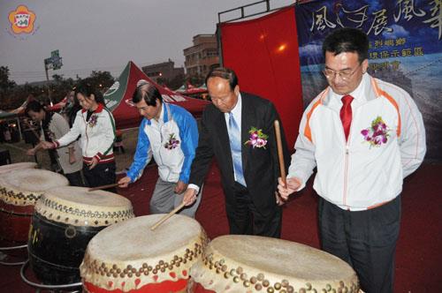烈嶼鄉優質環保示範區宣導說明會,昨天在軍民熱情參與之下展開,除有歌舞和大鼓的精彩表演之外;金門縣政府主任秘書盧志輝,烈嶼鄉長洪成發及與會軍政首長共同擂鼓,正式啟動LED風雞,希望在三月後風雞展風華,用花草樹木彩繪,打造屬於小金門的「花博」。 烈嶼鄉以「風雞展風華」為主題的營造優質環保示範區宣導說明會活動,昨天下午四時在八達樓子前方的西宅候車站廣場舉辦,現場並擺設有小吃攤位,以及插滿宣導旗幟,迎風搖曳。 在柔和優雅的元極舞和氣勢雄偉的大鼓表演,為烈嶼鄉營造優質環保示範區宣導說明會揭開序幕。隨後,烈嶼鄉長洪成發和環保局長楊世宏、縣議員洪麗萍、烈指部副指揮官王永新和鄉親一起為風雞圖案的花木施肥,象徵全鄉軍民將風雞的故鄉~烈嶼營造為優質環保示範區,處處可以看見以花草彩繪的風雞景致,還有聞到散播在空氣中的野菊香。 在活動中,縣府主任秘書盧志輝和烈嶼鄉長洪成發,以及環保局長楊世宏、民政局長翁伸金、烈嶼鄉代會主席洪若珊等人,共同擂鼓正式啟動LED風雞,象徵今後「風雞的圖騰」將遍佈烈嶼,發展出一篇又一篇生動感人的故事。 烈嶼鄉在全國三百一十幾個社區中脫穎而出,獲選為「營造優質環保示範區」;盧志輝致詞時,轉達李縣長祝賀之意,看到軍民共同參與的熱情。他說,環保是當今一個非常夯的議題,大家也了解過去一直追求高度經濟成長、追求生活質的提升;未來對於環境如何永續經營與發展,是一個重要和思考的課題,留給下一代子孫一個乾淨的生活天地。 烈嶼鄉獲選為營造優質環保示範區,洪成發感謝環保署的補助和縣政府指導,將從東林和西路兩個社區出發,在全鄉二十六自然村休耕農地以花草樹木彩繪、組合成各式各樣的風雞,除塑造本土文化特色與風格的原生植物,共同來綠化風雞的故鄉。 烈嶼鄉代會主席洪若珊也期望透過不斷的宣導活動,讓小金門有大烈嶼的風雞,將烈嶼之美推銷出去。