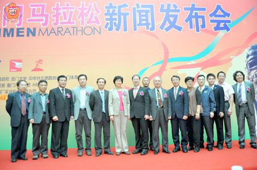 2011年金門馬拉松賽即將於1月16日盛大開跑,為了廣邀大陸各方好手前來參加,金門縣長李沃士、議長王再生昨日特別在廈門舉辦新聞發佈會,吸引二十多家大陸各主要媒體到場採訪,再度成功為金門聚焦,李沃士表示,金門是最適合馬拉松比賽的場地,歡迎大陸長跑菁英能齊聚金門英雄島,參與見證這場長跑盛事。 這項新聞發佈會於昨日上午10時許假廈門廣電集團大樓舉行,由李沃士主持,與會人員包括有:議長王再生、廈門市委宣傳部長洪碧玲、廈門巿政府副秘書長陳永茂、廈門巿台辦副主任吳順斌、廈門廣電集團總裁周旻、副總裁鄧小林、廈門廣播電視產業發展有限公司總經理張思杰、縣府教育局課長許能麗、金門縣立體育場長許換生、金門體育會秘書長辛雷達、金酒廈門分公司總經理陳聰文等人。 李沃士在致詞時指出,金門和廈門本來就是一家人,歡迎廈門與大陸各地方的好手都能到金門來參加2011年馬拉松賽,他說金廈兩地的馬拉松賽,各有特色,也因為相互的配合宣傳,讓兩地的馬拉松賽都躍上國際賽事舞台,相得益彰。 李沃士說,金門的環境很適合舉辦馬拉松賽,島上鬱鬱蔥蔥,空氣清新,環境優美,是最好的長跑場所;金門與廈門島相比,人口雖不多,但各項體育活動十分熱絡,小三通之後,更拓展視野,無論是金廈海泳、國際馬拉松賽、料羅海上長泳、自行車等,在兩岸三地與國際的參與下,吸引各國運動好手雲集至金門,金門也成為一個最佳的運動平台。 金門馬拉松賽將正式邁入第四年,李沃士也熱忱的歡迎大家來金門參加馬拉松賽,共同打造兩岸親情路跑,成就金門世界品牌。 中華台灣路跑協會秘書長陳華恆也介紹,2011金門馬拉松賽預定於2011年一月十六日登場,計分為健康休閒組(五公里)與競賽組(馬拉松四十二點一九五公里、半程馬拉松二十一點零九七五公里、路跑組十一點二公里),歡迎各方好手踴躍報名參賽,共襄盛舉。 在面對記者聯訪時,李沃士也透露,金門馬拉松賽將逐步走向國際舞台,逐年擴大來邀請世界的頂尖長跑選手參加,並打算著手製作「馬拉松賽健康護照」,為參加者留下珍貴的參賽紀錄。 金門馬拉松賽籌備處也表示,今年的馬拉松賽將增加高校生(大學生)的參賽比例,除了金門大學的學生外,大陸部分,包括福州大學、集美大學、華僑大學等校,也都會有學生組隊前來參賽,再加上各方好手,盛況可期。