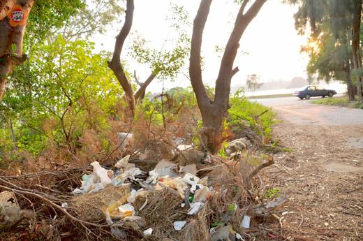有林蔭處,就有垃圾?太湖的林蔭可供駕駛人遮陽暫歇,駕駛人卻回報林下滿坑的垃圾! 太湖遊憩區、榕園旁的中正紀念林是金湖地區的金門名勝;環繞太湖的車道、草皮,天天有人進行清潔工作;不過,中正紀念林與海水淡化廠臨界的道路(軍營的聯外道路),卻成了髒亂點;經年累月,並沒有人打理;經過今年三次颱風之後,情況更加惡化。 環太湖一圈,在豔陽高照時,只有少數幾個地方有林蔭可供汽車駕駛人暫停車暫歇,其中一處在金門農工水產養殖場與金湖消防隊之間;另有一處在中正紀念林旁的閒置營區前。 日正當中,尤其是夏天中午,常有人把車子停在這兩個地方歇息;不過,這兩個地方也就成了亂丟垃圾的地方。 在農工附近的這處林蔭,還有人清理;在中正紀念林旁的這處林蔭,則成了死角。 昨天,有一部負責清潔工作的貨車停在中正紀念林旁的髒亂點;不過,貨車上的人員並不是要清運垃圾,而是要清理貨車。車子清理之後,髒亂點還是髒亂點。 太湖畔的清潔工作,不知是自來水廠外包的清潔人員該負責?還是金湖鎮公所的清潔人員該負責?是閒置營區所屬的軍方該負責?還是管理榕園的金門國家公園管理處該負責? 在林蔭下休息,卻把垃圾留在林蔭的駕駛人,製造了垃圾坑,孳養了蚊蟲-這些原本可以遮陽的好地方,也就失去了原本的功效。