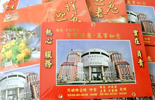 歲末寒冬!明(一百)年歲次辛卯,烈嶼鄉公所印製的「祥兔迎春」日曆,總共三千本,將發送給全鄉各家戶和機關單位賀新年。在日曆的封面首頁是公所行政大樓畫面,並書有「實在、負責、熱心、服務」的施政理念及服務電話,烈嶼鄉長洪成發和鄉代會主席洪若珊敬祝全體鄉親身體健康、萬事如意。 由烈嶼鄉公所印製的「祥兔迎春」日曆,昨天順利由台運抵公所,將在完成驗收程序之後,全鄉各家戶就可拿到印製精美又實用的新日曆,在元旦就可掛起來使用,迎接建國一百年的來到,展現新年新氣象。 「祥兔迎春」日曆內容有花卉欣賞、素食食譜、世界風情之外,也有農民曆可查看「吉、凶、宜、忌」;每週一至週五每天有一條格言,週六和週日同一頁介紹一處烈嶼風情,每一張照片均拍的十分的美,除了可以把烈嶼之美推銷出去,也可以看到不一樣的風雞的故鄉。 另外,烈嶼鄉公所在「祥兔迎春」日曆上,也印製有服務電話,其中鄉公所服務電話是:362500、364500;烈嶼鄉代會服務電話:363382、363365。 。