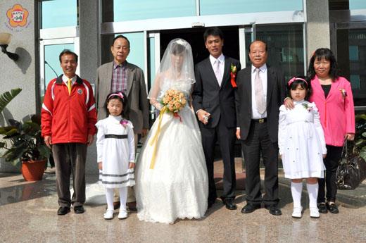 年底結婚的旺季即將來到!昨天即有一對佳偶天成的新人於親友陪同下,歡歡喜喜的到戶政所辦理結婚登記,烈嶼鄉鄉長洪成發福證,完成終身大事,一時烈嶼鄉公所大廳內洋溢著一片喜氣洋洋,在場公所和戶政所員工齊給予新人恭喜和祝福! 這對結婚的新人,新郎洪輝忠、新娘許蕙蘭,在昨天吉時良辰,新郎從烈嶼鄉搭船到大金門迎娶美嬌娘,經過一段海上結婚之旅,於上午十一時許,新郎和新娘手牽手,在親友陪同步入戶政所辦理結婚登記,烈嶼鄉長洪成發為新人福證,新人幸福笑靨掛在臉龐,並在公所行政大樓前合影。 烈嶼鄉戶政所主任周清國表示,新人結婚登記採隨到隨辦,若是週休假日,需在三天前提出申請,即會派員為新人辦理結婚登記服務。於辦理結婚登記須繳驗憑證書件有:一、雙方戶口名簿、當事人國民身分證和印章。二、結婚書約。三、國外註冊結婚證書並翻譯成中文經駐外館處驗證,其外籍配偶需另檢附經外館驗證之取用中文姓名同意書。四、大陸地區結婚者,檢附經海基會驗證之結婚證書及配偶入境通過面談後之入出境許可證。五、委託書或授權書(居住國外者須經駐外館處驗證)受託人身分證及印章。六、結婚當事人應檢附兩年內新式身分證規格彩色照片(不得使用合成相片)一張。