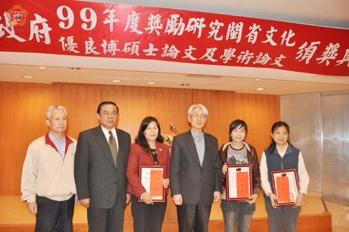 福建省政府為鼓勵更多人研究閩省人文及傳統文化,從今年起辦理獎勵研究閩省文化優良博碩士論文及學術論文,計有陳佳吉等五人獲獎,接受福建省政府主席薛承泰頒發獎勵金獎勵。薛主席希望延續活動的同時,也形成交流的平台,鼓勵更多人投入閩南文化的研究,傳承發揚下去。 省政府慎重其事於昨日上午十一時三十分舉行頒獎活動,省主席薛承泰專程來金門主持頒獎活動,省府秘書長曾華德和省府員工在場觀禮。 薛主席推許獲獎作者陳佳吉、黃子娟、蔡惠欣、林美華、李淑芳所投入研究閩省人文及傳統文化的精神,付出很多心力,完成豐富又有價值性的研究論文,獲得評審委員的肯定和青睞。薛主席說,省府從今年起,辦理獎勵研究閩省文化優良博碩士論文及學術論文,主要目的在鼓勵更多人研究閩省人文及傳統文化,建立閩省及閩南文化知識庫,提供各界與相關政策研擬之參考,讓居民生活更美好。並藉以拋磚引玉,讓各界重視這一區塊,舉辦更多的研究獎勵管道與機會,吸引更多的研究者投入與參與,共襄盛舉,以弘揚閩南文化精神。 薛主席表示,閩省人文及傳統文化,很有特色,也引起世界各地的重視,連美國知名的哈佛大學也重視閩南文化,閱讀史籍資料與文獻稿件,可看到閩南文化之研究文件較少,有待今後加以重視與推動。他希望透由這項鼓勵性的活動,來推動發揚閩南相關的文化,進而傳播到世界各地。 薛主席說,今年度是首次舉辦,投寄稿件較少,且大多是台金人士居多,很可惜的是未見連江縣人士參與,希望明年有連江縣的研究文件投寄,讓閩省南、北文化的內涵與特性,充分展現與交流,共同為閩省文化精神而努力。省府指出,今年入選優良學術論文乙篇是國防大學副教授陳佳吉所繕撰「戰地政務解除後金門縣議會的轉型與發展」研究,闡釋戰地政務時期與回歸地方自治議會組職與運作之比較分析,說明軍管與法治不同時期之差異性,對金門縣議會之發展闡釋與歸納相當完備,可供各界施政參考。獲頒獎勵金20,000元。 省府表示,另外入選優良碩士論文四篇:國立金門大學閩南文化研究所黃子娟所繕撰「從落葉歸根到落地生根│新加坡金門人的族群意識與認同變遷」碩士論文,論述金門移民僑居地之時程與奮鬥歷程,在時光的流轉下,探索後代僑胞子弟對原文化認同與轉變,作者為此研究曾遠赴新加坡多次做田野調查及深入訪談,敬業用心值得肯定與嘉許,她從移民的過程與後世調查中,研究金僑對原鄉文化與認同的轉變,對於僑務政策極具參考價值。獲頒獎勵金30,000元。國立雲林科技大學文化資產維護所蔡惠欣所繕撰「如何經營台灣的世界遺產潛力點│以流轉的金門為例」碩士論文,對金門文化遺產保存應以致力於世界遺產的經營作為之整體性看法與見解,可提供政府與民間相關人士參考運用。獲頒獎勵金25,000元。國立金門大學閩南文化研究所林美華所繕撰之「傾聽戰地的聲音:金門的戰地廣播(1949-1992)」碩士論文,描述戰地時期金門與對岸所運作之心戰廣播史蹟概要,闡釋戰地心戰喊話之重要性,對於金門過去戰地廣播做了較系統的訪談與整理,相關檔案及圖片很有價值,可提供各界參考運用。獲頒獎勵金25,000元。國立台北科技大學創新設計研究所李淑芳所繕撰之「地域文化與民居家俱之研究─以金門為例」碩士論文,將金門居民歷年家具與生活相串連,讓後人瞭解先民生活中家俱運用概況,留下美好的紀錄;也對金門居民家俱的歸類與常民生活家俱運用概況頗有見解,且蒐集圖片豐碩,足以提供學術研究參考。