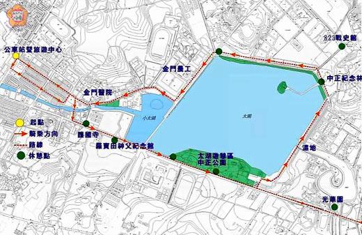 金湖鎮公所在太湖週邊規劃了自行車道系統;車道的總長度約五公里,計畫所涵蓋範圍約八十公頃。 金湖鎮長蔡西湖表示,總工程費約為一千五百萬元;已爭取到交通部觀光局一千四百二十五萬的補助,另七十五萬元將由金湖鎮公所配合。 蔡西湖表示,只要追加預算在本次(第十屆第一次)鎮民代表會中通過,就可以開始進行招標作業。 「金湖鎮太湖週邊自行車道工程規劃、設計案」已於本月中旬通過期末審查,主持人為鎮長蔡西湖,出席的審查委員包括翁自保、張梨慧、陳水龍等;新巿里里長吳志成也列席其間。 陳水龍建議簡化路燈以方便維修;翁自保提醒平台施作不得開挖破壞現有壩體(根據「水庫蓄水範圍使用管理辦法」)。張梨慧建議導覽牌的內容要豐富,儘量提供各種相關資訊,包括騎乘時間、注意事項、可休閒參觀景點、道路坡度等。 金湖鎮公所的「金湖鎮太湖週邊自行車道工程規劃、設計案」是委託新向榮工程顧問有限公司進行規劃。 根據規劃書的說明,隨著環境保育意識高張,公園綠地的建設特別受到重視;此外,健康旅遊的風氣,帶動了自行車運動盛行;因此,提供舒適、安全的自行車道,讓民眾及遊客體驗多樣性的生態景觀及提高休閒遊憩機會,成了永續經營的重要指標。 本項計畫的目標是要結合太湖美麗的風景資源及週邊的名勝古蹟、戰地風光,塑造自行車道的特色,發展金湖鎮獨特的自行車騎乘空間。 「金湖鎮太湖週邊自行車道工程規劃、設計案」所涵蓋範圍包括金湖鎮市區、八二三戰史館、太湖遊憩區、羅寶田神父紀念館、中正公園、金門農產試驗所等,範圍約八十公頃;自行車動線的車道總長約為五公里。 根據新向榮工程顧問有限公司所做的現況調查,居民認為太湖週邊宜增加自行車道路線標示,增加遮蔭遮雨設施及座椅,增加夜間照明,改善居民散步需求;原有部份自行車道因為與大型車輛共用,容易造成騎乘時的危險;中正公園常有車輛進入,易造成遊憩時的危險。 規劃公司所提出的設計構想如下:規劃完整的自行車道網路系統,串連太湖各週邊景點,提供遊客完整順暢的自行車動線及平整舒適的騎乘空間;在自行車道網路系統中設置停留點,加強周邊景點的串連效果;設置明確易懂的解說導覽系統,以增加動線自明性並兼顧生態永續效果的相關設計。 這項計畫的預期效益包括:建構完整健全的自行車道系統,提供鎮民運動及休閒的安全場所;整合中正公園、金湖淨水廠、榕園、光華園及白龍溪形塑成一個完整的活動區;提高各景點原本之功能與使用效益,並吸引觀光人潮;增長遊客在金湖鎮的停留時間,進而帶動地方特產消費及商機。 在期末審查中,審查委員陳水龍提醒路燈的數量及樣式要考量未來維修方便。行車LOGO線條應求簡單易於辨識。 翁自保表示,中正公園欲設置活動式車阻,不准汽車進入,應事先與道安單位取得聯繫,並先期辦理宣導。 吳志成建議相關規劃要配合「金湖鎮新市里林森路停車收費暨週邊改善規劃設計」,避免衝突。