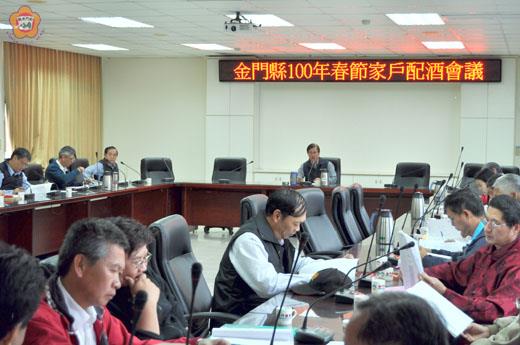 金門縣一百年春節家戶配酒,敲定於民國一百年一月三日至十一日,在五鄉鎮陸續配售作業;配售酒品,為一公升五十三度特選金門高粱酒一打(二箱)共計十二瓶,總價新台幣四千八百元整。 金門縣政府為實質嘉惠縣民,因應春節期間縣民對金門高粱酒需求,便利鄉親購置金酒,特訂定金門縣一百年春節家戶配酒實施計畫。縣府昨並召開春節家戶配酒會議,由縣府主任秘書盧志輝主持,財政局長黃景舜及民政局專員林志國、主計室專員吳財龍、金酒公司行政副總經理游鴻程,以及鄉鎮公所、戶政所、村里長等出席參加。 會中針對春節家戶配酒酒品派送時程、作業費等進行討論。縣府主任秘書盧志輝也感謝村里長及鄉鎮公所、戶政所、金酒公司的配合和努力。 這項春節家戶配酒,各鄉鎮配售日期分別為:金沙鎮│民國一百年一月三日至五日;金寧鄉│民國一百年一月四日至六日;金城鎮│民國一百年一月五日至七日;烈嶼鄉│民國一百年一月六日至八日;金湖鎮│民國一百年一月九日至十一日。春節家戶配酒以今年十二月六日為戶籍作業基準日。配售對象如下: 一、一百年二月三日年滿二十歲以上,且設籍金門縣滿一年者(於九十九年二月三日前設籍金門縣),但經戶政事務所依法將其戶籍遷至戶政事務所者,不符合配售資格。 二、於一百年二月三日年滿二十歲以上,且實際居住金門縣滿一年以上,受限於戶籍法等規定未能設籍金門縣,且其配偶符合春節家戶配酒實施計畫配售對象一、之規定者。 三、長期居住金門縣但受限於戶籍法等規定未取得戶籍之二位民眾(金湖鎮二位)。 四、各鄉鎮鄰長、調解會委員加配一份。 (飲酒過量有礙健康)