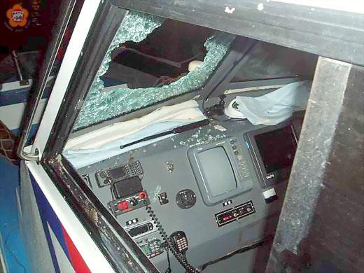 金門岸巡總隊昨晨查緝偷渡時,遭到大陸船員以石塊襲艇,以鐵棍打人;岸巡人員最後將三名大陸客及一名台籍偷渡客制伏,但有四名查緝人員受了瘀傷。 根據金門岸巡總隊總隊長扶大桂、副總隊長孫國智的說明,海岸巡防署第十二巡防區第九岸巡總隊昨天(十一月三十日)會同第九海巡隊、金門查緝隊等單位,於凌晨一時左右,在金門烈嶼鄉外海往大陸廈門市方向的赤礁海域,追緝一艘接駁國人偷渡出境的大陸漁船(無船名);由於大陸漁船拒絕停船受檢,並以預藏的大石塊攻擊多功能巡緝艇,導致多功能艇擋風玻璃破裂。經巡防人員以優勢船艇包夾後,制伏了大陸男子三人,並緝獲企圖偷渡出境的台灣籍男子一名。 昨天凌晨,岸巡總隊在雷達上發現有船隻快速航入禁限制水域,持續航向黃厝岸際,立即派人以高科技熱顯像儀對灘岸實施搜索,並藉由紅色熱點,發現有可疑人員迅速跳上大陸船隻。 巡防區人員隨即以CP-1008、CP-1010多功能艇在內的四艘艇組前往緝捕。艇組在海上飆速近一小時之後,才將偷渡出境的國人與大陸船員圍捕到案。全案已由金門岸巡總隊依違反國家安全法、刑法妨礙公務、毀損公物等罪,將嫌犯移送福建金門地方法院地檢署偵辦。 圍捕期間,因大陸漁船頑強抗拒,以大石塊及鐵棍襲擊多功能艇;海巡幹員跳到大陸船上,與大陸船員搏鬥,才將嫌犯制伏,但仍造成多功能艇多塊擋風玻璃破損及四名海巡隊員掛彩。