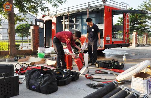 隨時準備好,以備救災救護之需。 金沙消防分隊正加強進行裝備器材保養,除就老舊不堪用之設備進行更換外,也維護各式救災救護設備之良好性能。一般民眾見到執勤的車輛工具,都是消防人員費時保養,隨時上緊發條準備出發;逢年度例行性裝備保養評比,保養工作更徹底;消防人員說,全套做到好要花上一整個星期。 金沙消防分隊分隊長陳叄奇表示,消防裝備保養工作平常就在執行,配合月底車輛裝備器材保養評比,所有人員更加備努力,全力準備,除了要讓救災及救護器材保持最好性能外,也在為團隊爭取榮譽。