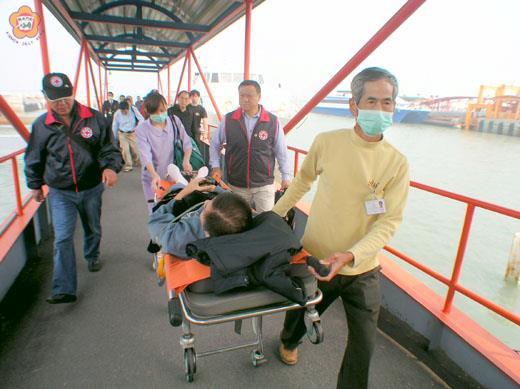 金門縣紅十字會接獲廈門市紅十字會通報,昨將在廈門經營服飾生意的罹病台商陳明堂(腦中風、四肢癱瘓)小三通接回署立金門醫院觀察,預定今天(23日)後送回到台北,再轉往大醫院接受治療。 在廈門經營服飾生意台商陳明堂(58歲),前後長達10年之久,日前因身體不適送醫,經醫生診斷腦中風、四肢癱瘓,病況危急,因此,家屬請求廈門紅十字會協助,希望協助其緊急送回台灣接受治療。 金門縣紅十字會接獲通報,昨上午11時由總幹事陳忠飛率志工許志行、鄭清平、周清庭等救援小組從廈門搭船接運台商陳明堂回到金門,並安排送往署立金門醫院觀察,等候後送返台。