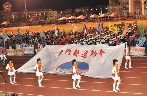 以「海洋仙洲、精采金門」為主題的金門縣第十七屆運動會,將自今(4日)起展開三天競賽,晚間並在金門縣立運動場盛大舉行開幕典禮。今年參加的選手及工作人員高達8千餘人,更有軍、民及身障朋友三組同場競技,開幕典禮之後,選手之夜特別邀請福建省雜技團精彩演出少兒軟功、肩上花盤等節目,歡迎全民共同來欣賞,同歡同樂。 金門這項二年一度的運動盛會開幕典禮於今天下午五時在縣立運動場舉行,將由兼大會會長的金門縣長李沃士主持;參與盛會的各方「人馬」在下午就陸續到運動場集合,由本縣各學校組成的「大會樂團」在會場演奏管樂暖場。 開幕典禮前首先展開序幕表演,安排由土風舞委員會五百人演出「同心協力、舞動吉祥」土風舞表演,接著中正國小七百多位學生表演「歡樂童年、青春活力」健康操,太極拳運動委員會四百人演出「太極奔騰、悸動仙洲」,舞蹈協會四百五十人表演「熱舞傳情、精彩金門」。 值得一提的是鄉鎮、學校代表隊安排別具特色的民俗表演隊伍,如金城鎮的北門醒獅隊、金寧鄉的電音三太子、金沙鎮的腰鼓隊、烈嶼鄉的鑼鼓隊、中正國小的鼓隊、金鼎國小的扯鈴隊、多年國小獨輪車隊、述美國小的跳鼓陣等等,將讓全場觀眾驚豔。 開幕典禮後,將由福建省雜技團帶來的精彩演出,節目主要有:《開場—繁花似錦》、《海趣—少兒軟功》、《穿越—地圈》、《花韻—肩上花盤》、《快樂的律動—草帽》、《如此更衣—雙人手技》、《空竹》、《靈動—球技》、《對弈—雙人技巧》、《魔術—神秘的微笑》、《滑稽—打靶》、《舞者—繩技》等,該團精彩的演出,引起極大的迴響,11月5日晚間七時在金沙國小將再演出一場。 本屆運動會自10月28日起首先展開籃球賽,比賽項目尚包括慢速壘球、羽球、田徑、桌球、拔河、木球、網球、保齡球、游泳、跆拳,同時還有趣味與競爭張力十足的大隊接力與趣味競賽。 比賽共分社會男子組(社男組)、社會女子組(社女組)、軍中男子組、軍中女子組、機關學校團體組(機關學校組)、高中男子組(高男組)、高中女子組(高女組)、國中男子組(中男組)、國中女子組(中女組)、國小男子組(小男組);國小女子組(小女組)、身心障礙男子組、身心障礙女子組。 全部賽程預定於10月6日下午五時結束並頒獎閉幕。為配合本次運動會,本縣除邀請福建省雜技團抵金演出三場,十一月三日晚間七時三十分並在文化局演藝廳舉行「縣運之夜」音樂會,由廈門市音樂學校管弦樂團及金門管樂團擔綱精彩演出,為體育盛會中增添兩岸文藝交流氣息。
