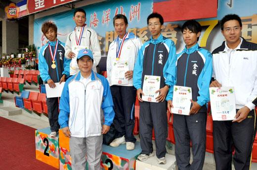 以「海洋仙洲、精采金門」為主題的金門縣第十七屆運動會,昨天起在縣立體育場一連舉辦三天賽程;今年參加縣運會選手和工作人員,高達八千餘人,更有軍、民及身障朋友三組同場競技。第一天進行多達五十餘項的各組預、決賽賽程,成績均已出爐,分別由縣府主任秘書盧志輝和烈嶼鄉長洪成發頒獎表揚;而,各校啦啦隊熱情的演出,也為田徑選手們加油,炒熱縣運會歡樂的氣氛。 縣運會第一天田徑各組各項比賽,自昨天上午八時起展開,田賽率先登場的是社男鉛球、高男鐵餅、高女跳高……,以及社男、高男、軍中男的一萬公尺決賽,在場上受到矚目的是長跑健將何盡平,他以穩健和良好的配速,一路領先,以成績32:19.2(原紀錄32:46:00),破大會紀錄;另一長跑好手黃世昌,緊追在後,也以32:40.5(原紀錄32:46:00),破大會紀錄。另外,高男鐵餅,金門農工翁柏煜,以成績32.72M(原紀錄29.62M),破大會紀錄,他們三位田徑好手,均創下佳績。 縣運會下午田徑賽程有國女鉛球、社男跳高、社女鐵瓶……,以及四百、一百公尺預決賽,也相繼傳出社男組一百公尺,金城鎮謝佳均,破地區及大會紀錄,成績10.90秒(原成績11.00秒);社女組一百公尺,金沙鎮鄧尹婷,破地區及大會紀錄,成績12.79秒(原地區成績13.10秒、原大會成績13.70秒);社男組一千五百公尺,金沙鎮何盡平破大會紀錄,成績4:05.45(原大會成績4:10.00),為縣運會第一天賽程再增光彩。 縣運會趣味競賽活動,普天同慶比賽在昨天上午九時起,學校組,共二十一隊分三組,取最優前八名:第一名古城國小,05:48.88;第二名金沙國中,06:08.13;第三名中正國小,06:30.54;第四名金門高中,06:42.71;第五名述美國小,07:10.36;第六名金湖國中,08:10.15;第七名安瀾國小,08:19.36;第八名上岐國小,08:25.70。 至於機關鄉鎮組的頂上功夫比賽,昨天下午二時舉辦,共三十一隊分四組擇最優前八名:第一名林務所,03:18.79;第二名消防局,03:50.19;第三名地政局,04:45.45;第四名航空站,05:18.85;第五名畜試所,05:37.09;第六名金酒公司,05:49.91;第七名檢疫所,06:04.45;第八名水試所,06:30.59。 今天縣運會賽程,上午八時起率先登場的是國男跳高、國女跳遠、小男鉛球……決賽,以及八百、一千六公尺接力賽等各項賽程。縣運會自上月二十八日起首先展開籃球賽,比賽項目尚包括慢速壘球、羽球、田徑、桌球、拔河、木球、網球、保齡球、游泳、跆拳;同時,還有趣味與競爭張力十足的大隊接力與趣味競賽,全部賽程預定於十一月六日下午五時結束,並頒獎閉幕。