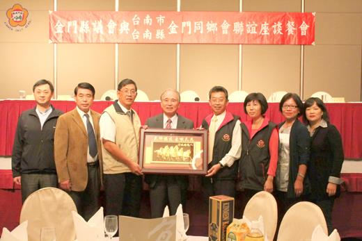 金門縣議會議長王再生拜會台南縣議會後,隨即又馬不停蹄的與台南縣市金門同鄉會舉辦聯誼座談會,王再生表示,本次特別安排到南部各同鄉會瞭解、傾聽大家的意見。台南縣市金門同鄉會全體出席理監事成員感謝議長王再生與議員的來訪,現場熱情掌聲不斷,王議長並代表致贈家鄉特產的伴手禮,讓理監事們品嚐家鄉思念的滋味,雙方並互贈紀念獎牌及紀念品。 本次是第五屆金門縣議會首次組團赴南部台南縣市、高雄縣市進行考察、參訪活動。聯誼座談會由台南市金門同鄉會理事長王泉尚、總幹事何柏霆、台南縣金門同鄉會理事長洪永成、總幹事莊學鵬與同鄉會理監事,感謝幾十年來首次有議長率同議員同仁到台南拜訪。 王再生表示,此行藉由關懷南部地區鄉親之機會,與同鄉會鄉親舉行座談會,希望同鄉會理監事多給予金門目前與未來改善與發展目標之建言,並給議會指導,對金門之相關發展規劃與階段性目標,作為議政推動的參考,順便影響周遭事業有成的好友前來金門投資。 王再生與台南縣市金門同鄉會舉辦聯誼座談會時說明行政院核定金馬中長期經濟發展方案,金門可望成為免稅貿易重鎮。金門想做的事,包括開發為自由貿易區,成為免稅島、大學島、觀光休閒、養生醫療島、機票應比照澎湖離島優惠的七折票價、金酒朝國際化永續經營、觀光星級飯店興建、閒置農地種植經濟作物、福利政策好不應浪費社會資源等,種種有關金門未來發展的建言,針對金門未來前途發展,旅台同鄉會會中提出許多寶貴意見,深獲議會政經觀摩訪視團的重視。 王再生表示,針對金門大橋屬於國土開發,可是金門縣政府卻要出資三分一,這對金門是相當的不公平。大橋順利興建也會給政府帶來穩定的稅收,可以帶動整體經濟發展,但後續的配套作業也應做好,鼓勵外資進行投資大飯店等觀光產業,才能創造商機與發展。王議長強調,小三通的進出人次今年約一百五十萬人次,尚義機場升級到乙級,加強水頭商港軟硬體設施,如果大陸再開放陸客三天兩夜旅客自由行,將來旅館、飯店的投資更要加速進行,希望靠大家的力量,讓更多人認識金門、喜愛金門、進而投資金門,促進地區的就業與發展。 王再生為台南縣市金門同鄉會詳盡的說明,而同鄉會暢所欲言對金門施政的建言和看法,對於王議長展現的誠意,讓旅台同鄉會感受到王議長親和力,而對於旅台同鄉會對金門發展的期待,王再生感同身受,因此,他希望旅台各同鄉會發揮力量,一起創造金門美好的未來。 議長王再生與議員等一行人今(三)日將參訪台南奇美博物館,欣賞古今中外藝術珍品後,於下午由高雄小港機場搭機返金,結束本次議政觀摩訪視活動。