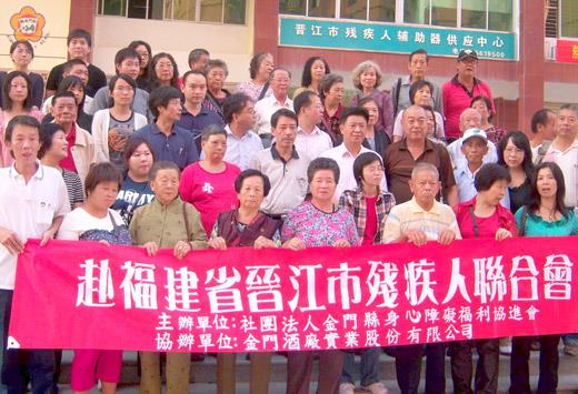 社團法人金門縣身心障礙協進會曾赴晉江參訪,並與晉江市殘疾人聯合基金會達成共識,日後兩地的殘障活動將互邀參加,以促進殘疾人士交流。 根據財團法人金門縣身心障礙福利協進會發布的消息,該會是應晉江市殘疾人聯合基金會之邀,由理事長王清武帶隊,於十月中旬率三十七人前往參訪。此次交流行程有:參觀晉江市殘疾人聯合基金會、晉江市紅十字會及晉江市殘疾人輔助器供應中心等單位。