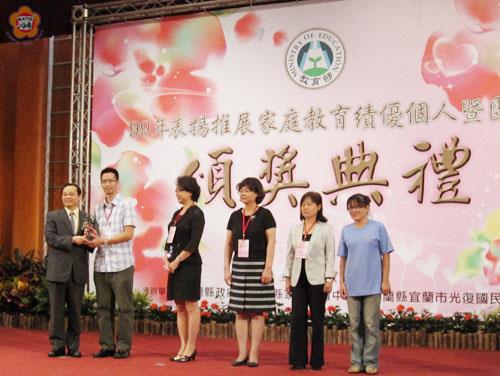 教育部前天在國家圖書館演講廳表揚推展家庭教育績優個人暨團體典禮中,來自金門縣金城鎮的賢庵國小,在推展家庭教育之機構團體評選中脫穎而出,榮獲全國績優團體獎殊榮,由教育部次長吳財順親自頒獎表揚。校長董國正與全校師生分享榮耀,並表示得獎是社會各界對我們的肯定鼓勵,將結合學校與社區,推廣成人終身成長教育,進而促進兩性和諧、親子關係,建立溫馨家庭、和樂社會。 賢庵國小推展家庭教育之機構團體榮獲全國績優團體殊榮,其優良事蹟是:每學年進行學生家庭背景調查,該校特殊家庭背景學生佔總人數達35%,故利用期初輔導工作會議討論如何推動家庭教育,期中持續追蹤輔導,期末進行反省與檢討。針對家庭特殊學生,請老師認輔、家訪、融入教學的方式,或尋求校外資源(如申請建構最需關懷家庭、友善校園心理諮商、愛心志工、村里長),確保學生學習及生活無虞。開辦夜光天使點燈專班,在各位老師的悉心指導下,學生明顯不再心浮氣躁,老師利用家長接送時間,隨機與家長進行「親職教育」,家長也願意配合學校的要求,並參觀相關親職教育講座或擔任志工,家庭氣氛亦有好轉。鼓勵校內教師參加縣級家庭教育教案比賽;董炯靈、熊真秀老師接受專業的家庭教育種子教師研習培訓,於校內週三進修時間與同仁分享心得。為因應該校家庭背景的多元化,舉辦教學參觀日、慶祝母親節、慶祝聖誕節、校外教學、外籍與大陸配偶生活適應班等活動,家長參與踴躍,大家藉由交流彼此分享經驗,家長都表示這種感覺很棒,除校內預算外,亦向金門縣政府、金城鎮公所、金酒公司、古崗董氏公益基金會、家長會等爭取經費。 校長董國正指出,家庭教育、學校教育與社會教育是教育的鐵三角,缺一不可,近年來社會急遽變遷,導致家庭結構重大改變,家庭教育日漸式微,而學校推動家庭教育引起家長重視,而該校在推動家庭教育不遺餘力,除致力於學童與社區居民人民素養提升,也願意繼續耕耘學校家庭教育這塊園地,結合學校與社區,推廣成人終身成長教育,進而促進兩性和諧、親子關係,讓家庭的溫暖與親情散播社會每個角落,建立友善、祥和的家園與社會。