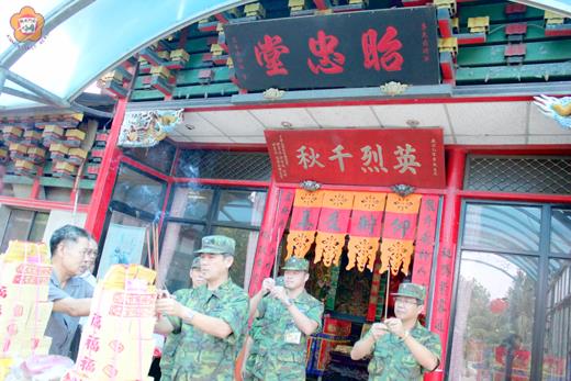 昨日是古寧頭戰役六十一週年紀念日,緬懷古寧頭戰役中壯烈殉國的國軍團長李光前將軍,西浦頭昭忠堂舉行金門歷年公亡將士超薦戰役亡靈法會,金防部指揮官張慶翔中將率領部將前往敬祭,追懷為國盡忠的將士。地方民眾絡繹不絕前往昭忠堂拜拜,祈求李光前將軍的神威護佑,家人平安順遂。 金防部指揮官張慶翔中將率同政戰主任李智雄少將、砲兵群指揮官鄭有為上校、金西守備隊長王永新上校、政綜組長樊修志等官士兵,於昨日前往西浦頭昭忠堂參與法會,敬祭古寧頭戰役中壯烈成仁的李光前和將士,追懷忠烈情操。 昭忠堂舉辦法會,超薦金門歷年戰役公亡將士的亡靈,民眾虔誠的拜拜,祈祝地方順遂、軍民平安順利。 從公職退休的莊永才,很敬仰李光前將軍的忠貞情操,自力建廟「昭忠堂」,虔誠供奉李光前將軍的神像,他也稱這廟是李光前將軍辦事處。莊永才除了信佛虔誠,十幾年來不斷的做法會,藉由「昭忠堂」的李將軍神威,超渡亡靈,也為人解惑,服務鄉親。