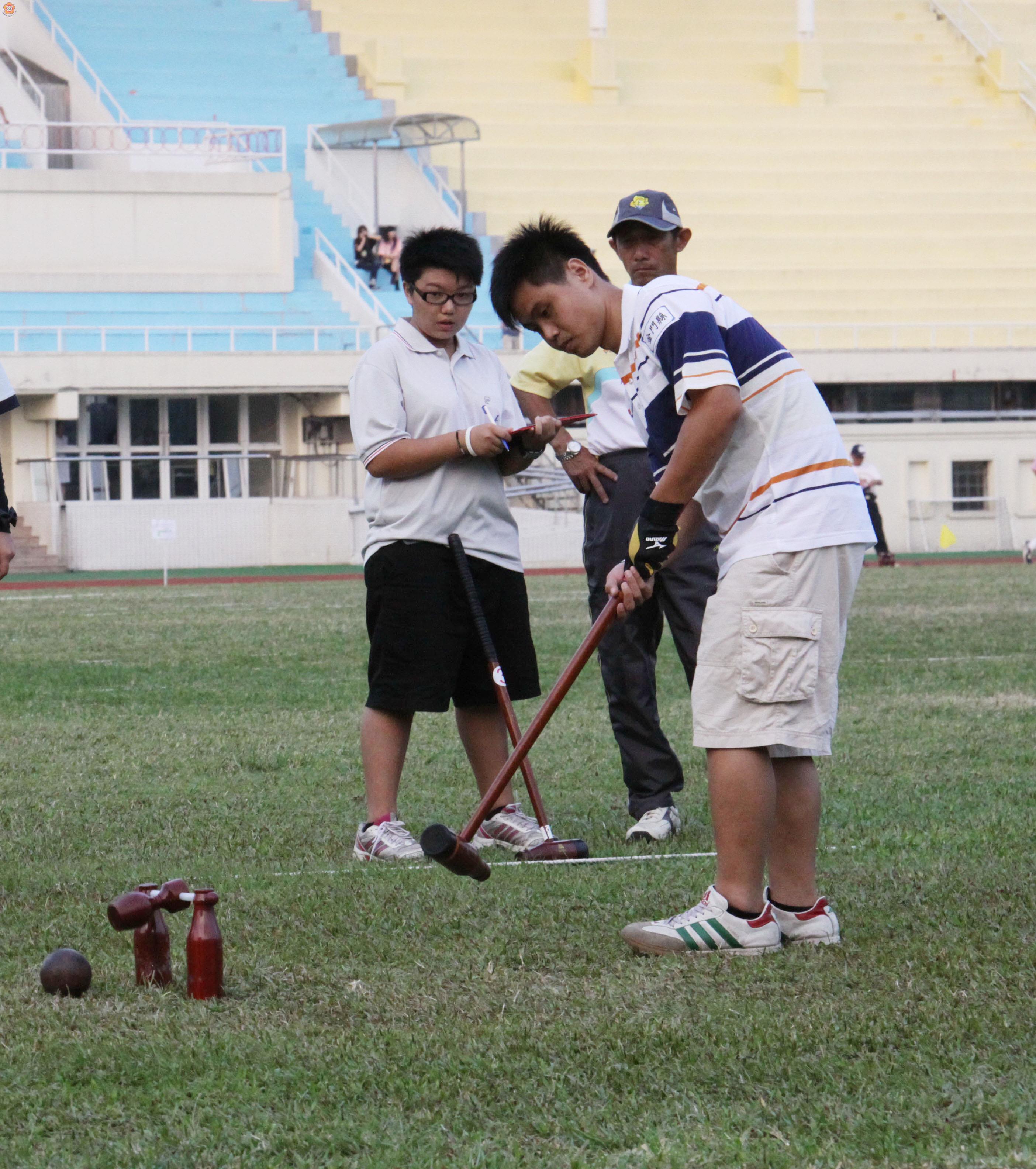 參加全民運動會的金門縣代表隊昨日展開第二天的賽程,頂著三十二度高溫,木球隊選手們賣力揮桿,戰況激烈,林本源在球道賽部分,順利通過第二輪初賽,進入前十六強;男子組個人桿數賽,張家豪暫列第二名、王文進暫列第三名。 全民運動會木球項目,昨日上午在國立台灣體院田徑場繼續開打,木球女子組團體組部分,前兩輪成績統計,目前以台北市358桿,暫居第一名;暫居第二名的是台南縣,成績為372桿;暫居第三名是屏東縣,成績388桿;金門縣成績略微落後,以399桿,暫居第六名。 木球女子組個人桿數賽部分,目前由苗栗縣江方瑀以81桿暫居第一名;金門縣的李素滿則以第1輪47桿、第2輪45桿,計92桿暫居第十一名。 男子組木球球道賽,共三十六人參賽,採單淘汰賽,取六名;林本源連勝兩場(第一場勝桃園縣選手,第二場勝台南縣選手),順利進級,進入前十六強。 木球男子組團體組,第二輪則尚未比完,前二輪金門縣的成績為377桿。 木球男子組個人桿數賽,金門縣前二輪個人最佳成績:張家豪,目前暫列第二名 (第1輪40桿,第2輪44桿)計84桿;王文進暫列第3名 (第1輪49桿,第2輪37桿)計86桿。 男子組雙人桿數賽,前二輪成績,何聰賢與許丕棠以 103桿暫居第十名;混合組雙人桿數賽部分,古棓羽與陳凱妮以103桿,暫居第5名。