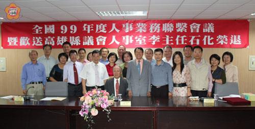 九十九年度全國各縣市議會人事業務聯繫會議,昨日移師到金門縣議會召開,縣議會議長王再生歡迎各縣市議會的人事主管共聚金門交流和聯誼,分享人事業務的經驗。王再生也向「客人」說明金門目前所推動的各項重大建設,希望他們多多幫金門宣傳、推銷,鼓勵更多大企業家來金門投資和建設。 縣議會議長王再生帶領議會秘書長許丕贊、和各部門主管熱忱歡迎各縣市議會的人事主管到金門「作客」。包括台北縣議會主任賴坤山、高雄市議會主任周淑華、高雄縣議會主任李石化、新竹縣議會主任張芳琪、彰化縣議會主任張正一、雲林縣議會主任丁明輝等人。 王再生表達歡迎之意,也說明金門現階段的發展建設,包括金門大學已經於今年八月一日掛牌成立,未來金門大學除了招收臺灣學生、僑生外,也有招收陸生的規劃,金門大學對招收陸生有地利之便,相信對陸生會有吸引力。連結大、小金門的金門大橋也即將要動工,也會帶動地方的發展。王再生也表示,位於兩岸樞紐的金門,以地理位置的優勢,小三通往來兩岸很方便,小三通人數快速的成長,大陸人民來金旅遊或是中轉到台灣的人數也倍數成長,金門的未來是有發展前景。王再生說,金門縣政府和縣議會也不斷招商,他拜託來自各地縣議會的人事主管能幫金門多多宣傳,歡迎更多國內外大企業來金門投資,一起參與地方的建設。會中,也歡送即將退休的高雄縣議會主任李石化,致贈紀念品,為此趟金門行留下紀念的回憶。台中市議會提出建議案,建請內政部函轉行政院主計處暨審計部轉飾各縣市議會(縣市政府)會計單位及各縣市審計室,希能簡化「地方民意代表費用支給及村里長事務補助費補助條例」中有關保險費之核銷手續案。金門縣議會提出建請將縣(市)議會一級單位主管職務列等比照縣(市)政府一級單位主管列等修正為簡任第十至十一職等。建請縣議會議長、副議長、議員之研究費應增列地域加給案。