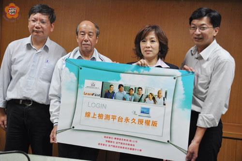 華頓語言教育股份有限公司捐贈予金門縣政府「LearnFast線上檢測軟體平台永久授權版」儀式,昨下午舉行,將免費提供全縣各國中小教師及學子英文教學及學習使用,嘉惠學子,以縮短城鄉學習及數位落差。 捐贈儀式昨下午二時假縣府第二會議室溫馨登場,由捐贈單位華頓語言教育股份有限公司總經理方嘉綺代表,將研發、價值新台幣150萬元的「Learn Fast 線上檢測平台永久授權版」捐贈給縣府,由局長李再杭代表接受,在場觀禮者包括金門大學應用外語系主任范仲如。 方嘉綺指出,華頓公司關心偏遠地區,尤其是離島金門地區學子,希望能夠讓離島學子享有與本島同樣的學習資源;配合教育部和金門縣政府推動數位學習及英語教學,決議將LearnFast線上檢測軟體永遠授權金門使用。 華頓語言教育股份有限公司開發部總監說明,該平台乃提供金門縣內國中小教師及學生線上英文試題(同步)測驗及(非同步)練習用,並透過完整的學習歷程紀錄,讓教師及學生更了解自我的弱點,強化學習重心,避免學習時間與精力的浪費。 金門大學外語系教授范仲如表示,該平台涵蓋多益、全民英檢初級、中級及中高級等等統統皆擺在平台內,讓學子自行練習後,能夠了解自己錯誤,對學子在接受真正考試時能獲很大助益;除此,還可加裝其他軟體如英文背單字軟體等等,相當實用。 李再杭代表李縣長對華頓語言教育股份有限公司所提供平台且永遠授權,表達由衷感謝,他說,將成為金門推動英語教育利器,金門自今年將開始在開瑄國小實施雙語教學,預定下週正式啟動;此套軟體將提供金門各國中小學子學習「好幫手」。 李再杭也表示,在獲充份授權後,將透過縣府網路中心提供各校師生上網使用,相信有助學子學習,進而與世界接軌。