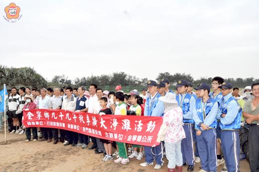 金寧鄉公所昨日辦理99年秋季淨灘活動,由鄉長陳成勇及環保局長楊世宏帶領國中小學生、駐軍及志工、清潔隊員三百餘人來清除海灘上的雜物、垃圾物品,還給海域水噹噹面貌。陳成勇希望藉由淨灘活動,提醒大家以實際的行動來為環保共同付出一份心力,一起維護大自然環境,才能永保青山綠水的自然資源。 秋季淨灘活動於昨日下午二時三十分在西堡海岸展開,包括鄉長陳成勇、環保局長楊世宏帶著金城分局金寧分駐所所長許耀華、鄉公所秘書傅仰鑫、盤山村長翁水河、金鼎校長張峰德、鄉公所員工、清潔隊長黃天文、清潔工、金寧鄉綜合福利服務隊志工,結合學區學校師生,及守備區駐軍和岸巡隊官兵三百多人,共聚在海岸廣場,大夥沿著海岸來淨灘,以實際行動來為海域「妝扮」。 陳成勇感謝大夥犧牲時間來參與活動,並指出西堡海岸毗連大陸,經常會因風向的關係而有大陸垃圾漂流來,鄉公所舉辦這項淨灘活動,就是希望喚起社會大眾對海岸維護的重視。也希望藉由淨灘活動,來喚起民眾重視維護大自然的環境,加強海岸環境清潔維護教育宣導,乾淨的環境需靠全民共同維護,只要你我不隨意棄置垃圾,落實垃圾不落地,就不會有垃圾漂流到海邊,影響大眾休閒生活品質。也盼望能號召更多民間義工團體認養、關懷、珍惜、愛護海岸。 楊世宏表示,為做好環境保護工作,地區各鄉鎮每年都辦理淨灘活動,以實際行動來為環保共同付出一份心力,一起維護大自然的環境,代表李縣長感謝大家為環保工作努力付出。 大夥沿著海岸線認真、賣力撿拾沙灘上的保麗龍、竹子、木板、瓶瓶罐罐,以及各式廢棄的垃圾,並立即由鄉公所垃圾車載往垃圾場處理,還給海域沙灘乾淨的面貌,顯得煥然一新。