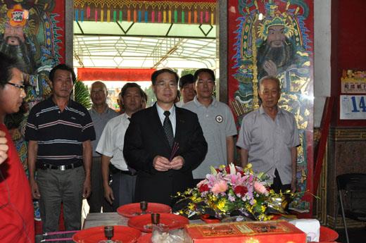 李光前將軍於古寧頭戰役時,奮勇殺敵、為國犧牲。金門軍民建廟崇祀,香火鼎盛,今(農曆九月初八)日為李光前將軍殉國日,昨(農曆九月初七日)起李光前廟展開一連二天的作醮活動,縣長李沃士率同金寧鄉長陳成勇等人前往上香祭拜,追懷李光前將軍為國盡忠,保鄉衛國的忠烈情操。 李光前在古寧頭戰役時,擔任第十四師四十二團團長,在戰役中奮勇殺敵,不幸中彈為國犧牲,年僅三十二歲。金門軍民於西浦頭北郊建廟崇祀,香火鼎盛,稱為李光前將軍。每年農曆九月初八,在李光前殉國日,金門西浦頭村民會舉辦醮慶及巡安活動。 縣長李沃士於昨日下午率同民政局長翁伸金、機要秘書楊忠強、金寧鄉長陳成勇、代表會主席楊萬山、副主席李開陣、民政局課長楊志斌等人前往李光前廟上香祭拜,受到李光前廟管理委員會主委莊國棟及西浦頭村老的熱誠歡迎,並在鄉老的陪同下,李縣長帶領大家向李光前神像上香、獻爵、獻牲禮、獻鮮花、獻福果、獻香茗、獻金箔、行三鞠躬禮,並敬獻爐敬金,表達對於李光前將軍護國衛民英勇事蹟的崇高敬意。 李光前是湖南平江縣人,陸軍官校十六期步科畢。民國三十八年十月二十五日爆發的古寧頭大戰,中共部隊二萬餘人渡海進犯金門,遭到英勇國軍將士迎頭痛擊,全數非殲即俘,奠定臺灣半個世紀來安定的基石,其中,國軍第十四師四十二團代團長李光前團長在西浦頭一帶率部反擊時,不幸壯烈成仁,以鮮血護衛金門,是國人心中的「英雄」。民國四十年,金門軍民擇定十月二十五日(農曆九月初八)做為李光前的殉國紀念日,並於西浦頭北郊的殉難處建廟。 李光前將軍的英勇犧牲,不但在生前做了軍人的典範,身後還有各種神蹟流傳,深受軍民愛戴,香火鼎盛,許多官兵,離開金門前,會到將軍廟還願,酬謝李將軍的護佑。 李光前廟管理委員會是從昨日起一連二天作醮,西浦頭村民熱絡投入各項活動,也有許多民眾專程到到廟內上香祭拜,祈求闔家平安。而昨天隨同李縣長前往的機要秘書楊忠強也虔誠向李光前將軍敬獻爐敬金,表達對於李光前將軍的敬意。 李光前廟今日並將舉行繞境巡安活動,護佑村民闔家平安。 縣長李沃士昨日在向李光前將軍參拜後,也在李光前廟前廟埕中與西浦頭村老共同交換對於地方事務的意見,對於每一位村老的熟稔程度,在在顯示李縣長在擔任議員時勤跑基層的功力,而村老也適時向李縣長建議光前廟前大路能夠拓寬,以免颱風來襲樹倒影響人車往來安全,並希望縣府補助老人會經費、協助社區獨居老人的送餐服務等。 對此,縣長李沃士也希望社區能夠成立發展協會以爭取縣府的補助,同時也能協助獨居長者的送餐服務。而對於西浦頭長寮重劃區在重劃後,村民利用的不多,雜草叢生,李沃士也向村老建議是否由縣府來種花進行環境的美化,可以吸引觀光客參觀,也能增加就業機會。