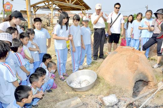 安瀾國小師生百餘人,造訪新前墩社區進行鄉土人文教學,透過實際參觀體驗,讓學生更貼近老一輩刻苦的生活方式,學習書上沒教的鄉土風貌,田園風光,美食及遊戲體驗,學生個個露出好奇神情。校長楊肅正說,現今孩子對鄉土認知和以往相較落差甚大,盼藉此激發學子感恩惜福之心,把握當下珍惜資源。 深耕鄉土學習,安瀾國小昨日辦理九十九年度學生文化遊學體驗營,校長楊肅正帶領百餘位師生,將學習殿堂移往戶外至金沙鎮大洋里新前墩社區親近田園,體驗鄉土風光。 安瀾國小一至六年級(二年級除外)百餘位師生,昨日下午一時許搭乘專車到新前墩,遊覽高粱花園、新前墩十二景,參觀農舍、豬圈、走訪生態農場、體驗簡易型小纜車,並在社區志工的介紹下,學習如何焢窯,開心品嚐土窯雞。 百餘位師生到訪新前墩,成為社區的小小貴賓,志工為師生準備土窯雞並現場透露焢窯秘訣;社區也為大家提供美味果汁;學子引頸企盼,眼巴巴地望著土窯,當香噴噴的土窯雞被挖出來的那一刻,小朋友差點沒流口水。另外,自天堂鳥流籠改造而成的小纜車,也深受學子青睞,兩人一組排隊搭乘,又驚又喜好不熱鬧。 新前墩社區從零開始,連續辦理八屆新前墩鄉村文化祭,小社區居民攜手打造富含田園、農村及生態的景觀,吸引社團及學童的到訪,昨也成為安瀾國小鄉土學習的首選。 校長楊肅正引領學生探訪農舍、豬圈,師長形容,從學子開心餵兔子,在草地上奔跑的快樂神情,不難觀察出,親近田園接近大自然的學習樂趣。