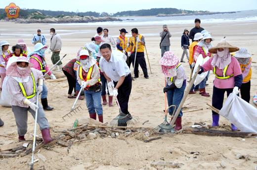 金湖鎮昨天在「金湖水庫」海邊(溪邊至峰上海域)舉辦秋季擴大淨灘活動,共有三百人參加,希望以具體的行動保護海洋。 根據金湖鎮公所的說明,這項活動的舉辦,是為了維護金門美麗海灘,使轄區軍民擁有一個整潔乾淨的美麗海岸線;使民眾從活動中體認環保工作之重要性,並教導下一代身體力行,一起保護海洋,延續海洋的生機。 這項活動的主辦單位是金門縣環保局;策辦單位是金湖鎮公所;協辦單位包括金門縣自來水廠、金湖鎮民代表會、溪湖里社區發展協會、蓮庵里社區發展協會。 參與淨灘的人員包括金湖鎮公所人員一百七十人、環保局人員十人、金門自來水廠人員三十五人、溪湖里社區發展協會三十一人、蓮庵里社區發展協會四十人、山外水環境志工隊十人。 金湖鎮長蔡西湖、環保局課長代理祕書楊建立、自來水廠廠長陳世保、溪湖里長呂光河、蓮庵里里長呂玉華、山外里里長陳晚開、金湖鎮公所環保課課長陳永要等,都參與了這次的環保行動。 參與的社區居民和志工包括黃奕添、張麗琴、黃秀麗、吳麗治、陳含鳳、莊明麗、陳瑞真、周愛寶、陳羨珠、鄭愛英……等。 蔡西湖手拿二十二齒鐵鈀,與參與的人員協力,為淨灘工作展開序幕;他說,整潔的金門要靠大家一起落實,並提醒鄉親、志工們注意安全。楊建立希望透過大家的努力,讓環境更美麗。 呂光河表示,金湖水庫已經完成,等排雷工程完成,防風林長大,溪邊至峰上海域的環境越來越好;不過海漂垃圾的問題還是存在。 呂玉華表示,為了保護沙灘,蓮庵里峰上海邊的居民,每個月都會舉辦自發性的淨灘活動;他對居民的參與表示欽佩。 陳晚開表示,他所參與的水環境志工隊,每個月都會定期到金湖各湖庫巡邏,希望確保環境不受污染。 陳世保表示,金湖水庫(原稱下湖水庫)的水目前還是鹹的;自來水廠已請專家解決中,希望能儘快改善。