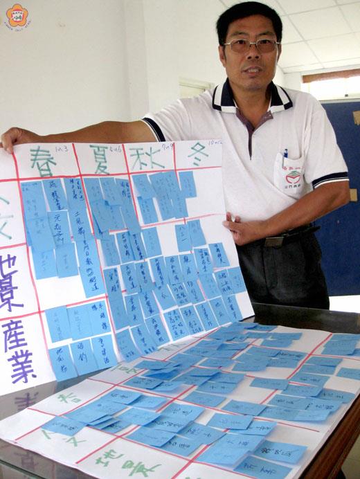 春宜辦桌,夏可牽罟,秋得做醮,冬要吃頭;春探軍樂園,夏遊中興亭,秋拜象德宮,冬訪仙鶴宮!正義里的四季,蘊藏著許多人文、地景與產業,可供居民再發現,再利用,甚至可以活化成為社區之寶! 行政院農業委員會漁業署於昨天和前天接連兩夜,在正義里舉辦「漁村社區農村再生培訓(培根)關懷班」研習活動;成功社區和尚義社區的居民,在講師王貞儒的引導之下,以春、夏、秋、冬為經,以人文、地景、產業為緯,思考社區裡有些什麼資源。 參加研習的居民包括陳偃武(正義里里長)、陳國泰(金湖鎮民代表)、陳金城、陳雲龍、陳森照、董碧嬌、陳金碇、陳長坤、陳得興、陳舜照、黃宗興、黃朝木、黃允森、黃朝庭、黃再應、王江潮、黃麗珊、陳明珠……等。 經過腦力激盪,參加研習的成功、尚義居民,羅列出如下的結果: 春天的人文活動有:挽面、舞龍舞獅、除夕點燈、包菜粿、「三更雞啼報時」、新婚抬花轎……。根據陳偃武的說明,「三更雞啼報時」是民殷財富的反映,若雞不啼則代表村中不寧。 夏天的人文活動有:鑼鼓陣、抓蟬(抓大烈)、挖花蛤、蚵乾肉粽、拼貝、拖沙網……。 秋天的人文活動有:八月初八做醮、拜月亮、「潰粉」(輾粉)、觀落陰。 冬天的人文活動有:祭祖、吃頭、木雕、舂臼……。 春天的代表性地景包括:軍樂園、吊烏、象德宮、成功街道……等。根據陳偃武的說明,象德宮主祀溫王爺。傳說,溫王爺的神位隨成功(陳坑)的陳氏祖先來到金門後,復化為人形,到大陸購置木材,並要賣家寫上溫字,直接放到海裡,結果竟然隨水漂到金門;溫王爺又托夢給陳氏族人,指示建廟事宜。另有一說則是有木材商遇到事故,木材漂流,陳坑居民主動蒐集奉還,商人感謝之餘,全數回贈做為興廟的建材。 陳偃武表示,傳說溫王爺在八二三戰役時曾經顯聖,讓駐軍逃過一劫;因此過去阿兵哥到廟裡燒香,還敬獻錦旗;可惜那些錦旗沒有被保存下來。 夏天的代表性地景包括:坑道、日出、古厝、中興亭、南方宗祠……。 秋天的代表性地景包括:巡檢司尋根、飛機起降、觀浪……。 冬天的代表性地景包括:戲台、官兵休假中心、觀星、海岸夜景……。 春天的產業可以是:年糕、蘿蔔糕、曬蚵乾、地瓜粉、菠菜、芹菜……。 夏天的產業可以是:地瓜簽、地瓜粉、醃花蛤、牽罟、牛車之旅、馬車之旅、角瓜、花生……。 秋天的產業可以是:烤地瓜、午魚、馬加魚、豆仔魚、黃魚、春子……。 冬天的產業可以是:麵茶、梭子蟹、白鯧、斯丁魚、芫荽、泡菜……。 講師王貞儒表示,「漁村社區農村再生培訓」的舉辦,是為了讓社區珍視有價值東西,不要廢棄,希望能活化再利用,成為可以自給自足的產業。