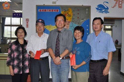 金城鎮西門里黃勝國與南門里李淑賢經金城鎮公所推薦獲選為中華民國第四十五屆模範老人與敬老楷模,將於十月十日在台北市國軍文藝活動中心舉辦全國慶祝老人節大會中接受頒獎表揚,金城鎮長石兆瑉昨日特別致贈程儀表達恭賀之意,也肯定其優良表現。 鎮長石兆瑉是於昨日上午十一時於鎮公所各致贈程儀三千元,祝賀黃勝國與李淑賢獲選為中華民國第四十五屆模範老人與敬老楷模殊榮。石鎮長並感謝他們對社會付出與貢獻,深受地方好評,不但是最佳的典範,也值得後輩學習與尊崇。 現年71歲的黃勝國,服務於中華電信四十多年,經歷助理管理師等項職務,育有子女六人在各服務機關有良好表現,是地方上人人稱羨的模範家庭。退休後並未賦閒在家,積極參與擔任金城鎮西門里民生社區發展協會理事、金門縣老人權益促進會理事、金城鎮西門里外武廟管理委員會監察人及金城鎮金水里黃氏世澤堂宗親會理事長,黃老先生雖已七十高齡,仍熱心為鄉里服務,負責盡職,任勞任怨,熱心公益、服務大眾引以為榮,此次榮膺全國模範老人,則當之無愧。 李淑賢目前從事菜販生意,每天忙完賣菜工作後,大部分時間都投入志工服務行列,是金門版的「賣菜阿嬤」。她長期於金門家庭扶助中心,投入心血照顧該中心弱勢家庭,並結合志同道合的朋友,成立金門家庭服務中心展愛服務隊,並擔任隊長來奉獻心力服務,其最終目標是秉持「服務還是服務」。對於獨居老人、低收入戶等弱勢家庭,主動配合慈善機構或發動急難救助,不時給予窩心而實質的關懷與救助,擔任南門社區發展協會常務監事,熱心推動社區發展工作,擔任南門里鄰長,協助政府推行政令,推動各項建設,熱心協助老人處理各項敬老申請,對孤苦年長者之病痛照顧與協助就醫,深受鄰里讚許。 李淑賢十年來擔任志願服務志工、義工,熱心參與老人兒童福利服務,捐血、文化推展、勞工服務等各項社會服務活動,獲得金門縣政府、金門家庭服務中心、金門紅十字會、金城鎮公所等單位頒發獎牌、感謝狀表揚,家中懸掛許多獎牌、感謝狀正是服務社會獲得肯定的成果。歷年來除兼顧事業與家庭,閒暇時間則奉獻心力參與各項志工服務,曾獲得全國模範勞工、救國團金城鎮團委會二等服務獎章、模範志工、金城國中、中正國小等學校傑出校友表揚,此次榮膺全國敬老楷模,實至名歸。