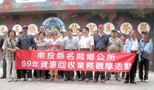 南投縣名間鄉公所,由秘書陳吉松帶隊至鄉烈嶼觀摩垃圾回收業務,一行二十七人在烈嶼鄉公所的協助下抵達清潔隊陽山隊部,經由隊員張家誠等解說,實地瞭解烈嶼鄉資源回收場業務,希望藉此行汲取經驗,增進未來垃圾減量及資源回收工作之進行。 南投縣名間鄉公所於十月四日起抵金展開為期三天的參訪行程,由鄉公所秘書陳吉松帶隊,一行人先至金湖鎮公所清潔隊參訪,昨日下午二時到烈嶼鄉考察資源回收業務。 南投名間鄉公所一行人昨由鎮公所民政課洪國棟負責接待,並在清潔隊張家誠的解說下,實際瞭解烈嶼鄉垃級回收工作概況。名間鄉公所表示,此行主要瞭解金門各鄉鎮清潔隊如何執行資源回收業務,希望能夠以些作為清潔隊進行垃圾減量及垃圾回收工作之參考。 南投名間鄉公所經前往金湖、烈嶼觀摩清潔隊業務之後,預訂今日上午九時將到金城鎮公所清潔隊參訪。