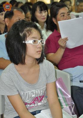 張建騰/圖文 小小志工,大大快樂! 今年十月才要滿十二歲的蔡欣宸(前),已經參加過四場志工訓練;她說:快樂志工就是我! 蔡欣宸的媽媽陳金治是一位志工,受到媽媽的影響,目前就讀小六的她和就讀國二、國三的哥哥、姐姐,都耳濡目染,參加了志願服務。 蔡欣宸參加志工研習的動機,原本有點兒沒事找事的想法,並希望對學業有加分作用;不過,參加過研習之後,她的觀念已經改變;她體會到志工就是要服務社會大眾;她說:別人快樂就是我的快樂!