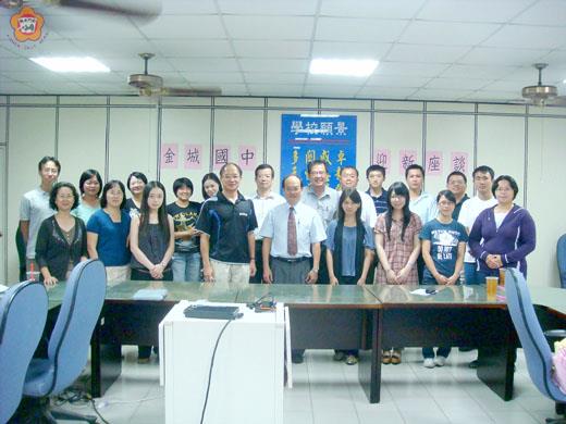 金城國中教師會為幫助新進教師同仁及早適應城中生活,並促進新舊同仁彼此認識與了解,以營造城中優質教育環境與氣氛。特別利用週日假期舉辦一場新進教師座談會,勉勵他們針對學生不同狀況,多付出愛心了解,期盼每位新進教師不分彼此,同心協力為教育投入奉獻,共同營造一個優質的教育園地,將教育延伸到家庭,讓孩子學習成長的環境更周全。 該項座談會於週日下午三時三十分假城中校史館舉行,由金城國中教師會理事長陳世聰主持,計有新進正式和代理代課教師十五人參加,陳世聰致歡迎詞,並進行教師會會務報告,再安排教務主任許志傑、學務主任陳德泉、輔導主任洪子聖分別作教務、學務與輔導的行政業務說明,另外也特別邀請較資深的導師宋文法和較資淺的導師賴靜慧向與會新進老師分享帶班和班級經營撇步,更邀請家長會會長石兆瑉鎮長,分享家長會對新進教師的期望,並介紹金城學區的資源,歡迎來自台灣的新進教師同仁多加運用,座談會歷時二個半小時結束,與會之新進同仁都感收穫豐碩。 教師會理事長陳世聰希望透過面對面座談,實地了解新進教師的生活起居及需求,聽聽他們的心聲。陳世聰認為,千里迢迢來金任教教師若能安定自己生活起居,便能安定班級,進而也就能教好學生,期望每位新進教師能夠將學校當成自有的,全心為教育投入奉獻,同時發揮小班教育功能,將教育延伸到家庭,讓孩子學習成長的環境更周全。 另外城中教師會在校教師同仁,也於晚上六時假金瑞飯店辦理迎新餐會,席開三大桌,以表達他們對新進老師的竭誠歡迎之意。
