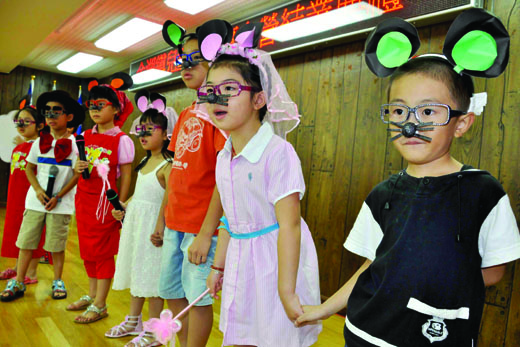金湖鎮公所舉辦的「兒童英語體驗夏令營」昨天在老鼠嫁女兒的英語短劇公演之後,劃下了句點。參演的小朋友,至少學會了日、雲、風、牆、鼠的英語該怎麼說! 由小朋友裝扮及組成的老鼠家庭,成員個個有著大耳朵、翹鬍子、大眼睛(眼鏡框),模樣很可愛。在劇中,他們就是全世界最偉大的! 金湖鎮公所在暑假的星期六和星期天舉辦了為期六週(共十二天)的「兒童英語體驗夏令營」。夏令營中規劃了:ABC字母教學、自然發音法、基礎會話、英文歌曲教唱等課程。 這一夏令營於昨天舉辦成果發表會,安排小朋友分組上台齊唱英語歌曲,並由一組小朋友演出英語短劇-老鼠嫁女兒。 劇中,老鼠家庭的鼠爸爸、鼠媽媽要為女兒找結婚的對象;牠們想要找全世界最偉大的人來當他們的女婿。 首先,他們想到了太陽先生,因為太陽照亮了全世界;不過,太陽認為雲先生才是最偉大的,因為雲可以遮天蔽日。 雲說風先生才是最偉大的,因為每當它遮住天空時,風一來就會把它吹跑了。 風說牆先生才是最偉大的,因為它無法把牆吹倒。 牆說老鼠們才是最偉大的,因為老鼠可以把牆鑽得到處都是洞孔。 日怕雲,雲怕風,風怕牆,牆怕鼠,原來,鼠才是最厲害的;最後,鼠爸爸、鼠媽媽決定把女兒嫁給鼠新郎! 金湖鎮公所舉辦「兒童英語體驗夏令營」的目的是要透過多元教學活動,營造歡樂的學習氣氛,讓小朋喜歡英語、親近英語。 昨天的結業式,鎮公所為每一位小朋友準備了加框的結業證書,由鎮長蔡西湖一一頒發,並與小朋友、家長、講師Shelly和梁明玲等合影留念。 蔡西湖在閉幕致詞中重申開幕致詞中的言語;他表示,別的鎮有的,金湖鎮也要有,才不會輸在起跑點,並希望下回的英語營可以辦得更好。