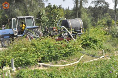 地區高溫無雨,秋作高粱進入抽穗期,需要灌溉以維持抽穗及結果(粒)所需,農塘水量幾乎見底,農友四處找水源,苦無足量可以灌溉,一臉愁容,期盼天降甘霖,並且政府能夠適度釋放非飲用水之水源,以解燃眉之急。 有契作農民表示,高粱雖屬耐旱作物,但在各成長期都需要適量的水才能夠維持生長及提高產量。金門地區夏秋降雨少,近期地區高溫無雨,不僅一般人無法忍受,辛苦種植的高粱,來不及引水灌溉,有些已枯萎死亡,期待老天快下雨。 而有農友則指出,能夠幸運找到農塘取水,也要有足夠設備載運,一來一往能夠灌溉的面積少之又少。特別是東半島水源難覓,去年新建農塘多少蓄存水量但已見底不夠用,期盼縣府能夠釋放非飲用水源的湖庫水,幫助農民解決急需,也降低農作乾旱損失。