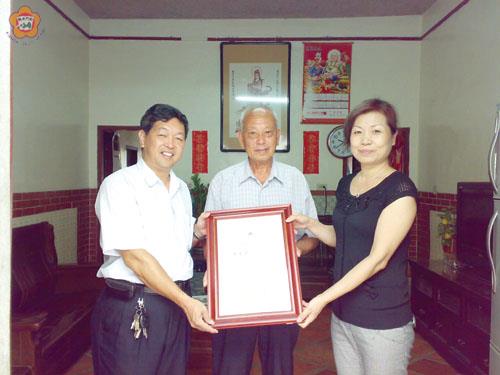 金寧鄉調解委員許丕漳做「公親」十六年,為民眾排難解紛,獲得內政部表揚績優調解委員的殊榮,金門縣政府民政局長翁伸金、金寧鄉鄉長陳成勇昨日聯袂向許丕漳致賀,並轉贈內政部長江宜樺頒贈的獎狀及紀念品,表達道賀之意。 許丕漳因事無法赴臺參加內政部「績優調解委員表揚大會」,當面接受內政部長江宜樺頒贈「年資獎」調解委員的獎狀及紀念品,由縣府民政局長翁伸金、金寧鄉鄉長陳成勇帶來這項中央獎勵的榮譽。 翁伸金指出,許丕漳曾任村長、縣農會理事,自民國82年8月義務擔任調解委員迄今十六年,致力為民眾排解糾紛,定訟止爭,平息了很多地方法律糾紛。她感謝許丕漳多年來義務奉獻時間做「公親」,促進地方的和諧,貢獻很多。 陳成勇說,「公親」是吃力不討好的角色,該鄉聘任的調解委員,不僅熱心地方事務,也是素孚眾望,很得人和,調解糾紛案件,大都能有所結果,順利調解很多糾紛案件,減少民眾到法院「對簿公堂」,傷了感情。 秋節將屆,翁伸金、陳成勇除了向許丕漳賀節,也提前向所有調解委員們賀秋節,感謝他們無給職的服務鄉親。