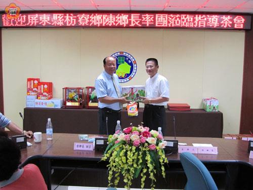 屏東縣枋寮鄉參訪團一行三十多人,昨日在鄉長陳訓宗暨鄉代會主席鄭永章率領下造訪烈嶼鄉,受到鄉長洪成發與鄉公所同仁的熱烈歡迎,兩公所並交換彼此環保等工作之經驗;稍後,洪成發也致贈枋寮鄉「烈嶼之友」紀念牌、鄉旗、香芋等紀念品給陳訓宗等人,雙方互動熱絡,氣氛溫馨。 屏東縣枋寮鄉參訪團一行於昨日下午四時五十分來到烈嶼鄉公所,洪成發特別安排交流茶會,讓兩所的主管與環保業務人員彼此交換工作心得。 洪成發表示,希望大家造訪烈嶼之餘,有任何的建議,都可以隨時跟他們來提出,期望烈嶼地區給大家的印象,是不斷的進步與蛻變,永遠是座美麗而溫馨的島嶼。 洪成發也親自介紹烈嶼地區的風土民情、農特產品、地理環境、各項為民服務工作,為歡迎遠道而來的朋友,洪成發特別致贈枋寮鄉「烈嶼之友」紀念牌、鄉旗、香芋、烈嶼鄉徽等禮品,同時陳訓宗、鄭永章也回贈農特產品,場面溫馨熱烈。 烈嶼鄉民代表會代表林長耕昨也全程陪同參訪團人員,洪成發也邀請枋寮鄉一行人至鄉公所三樓多媒體視聽室,收視戀戀烈嶼影片,並至鄉史館參觀,較更深入介紹烈嶼地區現況發展,讓他們都對烈嶼地區有更深刻之印象及不同之體驗。 稍後,陳訓宗、鄭永章一行也參觀文化館、鄉內建設與觀光景點,並至清潔隊資源回收場觀摩、取經,由清潔隊隊長林長固親自擔任解說。 陳訓宗、鄭永章等人感謝洪鄉長的熱誠招待,對於烈嶼鄉之建設現代化、環境整潔、民風純樸、熱情好客、治安良好,都留下深刻印象,他們表示,烈嶼地區的環保業務嫻熟、空氣清新、景觀優美,都是他們最佳的學習榜樣,希望往後大家能持續保持友好,多往來互動。