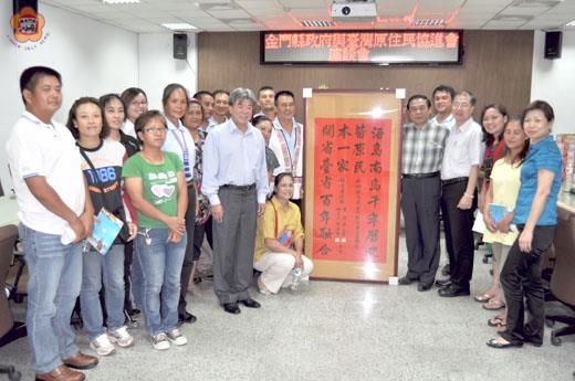 福建省政府秘書長曾華德、金門縣長李沃士昨與金門縣台灣原住民協進會座談,均表示樂於提供原住民最大服務,讓旅居金門原住民在工作上和生活上能更融入金門。 座談會昨日下午三時四十分起,在金門縣政府第三會議舉行,由縣長李沃士主持,也是金門縣台灣原住民協進會榮譽理事長的福建省政府秘書長曾華德、金門縣政府社會局長方天吉、專員顏恩威、民政局長翁伸金,和現任金門縣台灣原住民協進會理事長章朝枝及近二十位理監事出列席參加。 縣長李沃士對於金門縣台灣原住民協進會已成立,雖然這次金湖花蛤季未能有原住民才藝表演融入,但未來金門各大型活動舉辦,是希望邀請原住民才藝表演,並樂見第一屆原住民聯合豐年文化節搭配明年金湖花蛤季舉辦,以做很重要的文化融合和觀光行銷。 李沃士也強調,縣府有民政局、社會局等做為窗口,原住民在生活上或遭遇困難,可透過窗口聯絡或聯繫管道,請求協助,公部門能做到的,都會儘力幫忙。 曾華德則指出,金門縣台灣原住民協進會成立,縣府出力不少,在協進會扮演公益服務團體角色,是希望原住民把金門當做第二故鄉,大家有凝聚力,唯有團結才有力量。 他並轉頒一幅福建省政府主席薛承泰所贈中堂予金門縣台灣原住民協進會,這幅中堂書有「浯島南島千年歷史皆原民」、「閩省臺省百年融合本一家」相互勉勵語。 金門縣台灣原住民協進會理事長章朝枝則就會址無著落,及該會成立有一支舞蹈團,請縣府協助尋找適合場地,並期能有機會參與金門大型活動演出,增加協會額外經費收入。對此,縣長李沃士請社會局幫忙找尋大一點營區做為協會會址,民政局則行文相關局室,有大型活動可邀原住民舞蹈團參與演出。 會中,社會局也針對相關業務攸關原住民權益做簡介。對於未來會址一旦有著落,金門縣台灣原住民協進會也建議,能朝藝術村做原住民手工藝展覽或指導教學發展,並藉以吸引觀光客成為另一新景點。 章朝枝也表示,金門縣台灣原住民協進會將於九月十八日在成功海灘舉辦金門縣第一屆娜魯灣文化節活動,其它如原住民語言巢│阿美族母語研習班、基礎電腦研習班、原住民傳統樂舞蹈教學班,也希望縣府提供經費挹注。