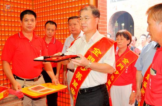 祝賀魁星聖誕,金門沙美萬安堂活動一波波。昨日上午在魁星爺聖誕獻供大典後,主任委員黃瑞華代表致贈六萬元獎助學金給金門縣特殊教育資源中心作為身心障礙學生獎助學金,由縣長李沃士代表接受,各界與會觀禮,肯定萬安堂對社會的關懷及弱勢的照顧。 慶賀魁星聖誕,沙美萬安堂熱鬧辦理慶典,管理委員會主任委員黃瑞華昨日代表捐贈新台幣六萬元作為金門縣特殊教育資源中心身心障礙學生獎助學金,由縣長李沃士代表接受,與會貴賓肯定萬安堂對於社會的關懷照顧,並期能拋磚引玉,為社會帶來更多良、善的力量。 黃瑞華表示,感謝縣長李沃士、議長王再生等各界貴賓前來參與魁星爺聖誕慶典。管委會捐贈六陸萬元中,貳萬元為五文昌殿點燈收入款;難能可貴的是,分別各有貳萬元為萬安堂名譽主任委員黃筱萍(高雄長誼公司董事長)及萬安堂名譽主任委員蔡錦鑾(彰化鏘榮公司董事長)之贈助款,感謝各界對萬安堂及金門的支持。