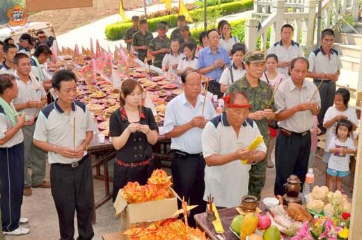 農曆七月為民俗「鬼月」,在金門全島各地舉行普渡祭典聲中,金寧鄉古寧村民昨天依例在村口和出海口舉辦隆重路祭,祭拜古寧頭大戰犧牲的國共兩軍官兵,希望「好兄弟」飽享盛筵後,不要入境擾民。 一九四九年十月二十五日爆發的古寧頭戰役,中共軍隊近萬人渡海進犯金門,在古寧頭一帶登陸,遭到國軍將士迎頭痛擊,血戰三天兩夜,國共兩軍官兵死傷慘重,因此,古寧村每年農曆七月初八在路口舉行路祭,祈求境內平安。 昨日是農曆七月初八,古寧頭村民依習俗全村總動員,並準備了豐富的祭品,於下午五時許分別在古寧國小的北山路口、關帝廟口、南山出海口、北山出海口,及林厝等境外路口,拈香祭拜在民國三十八年古寧頭戰役犧牲的「好兄弟」,祈求境內平安,萬事順遂。 村老們表示,農曆七月為民間俗稱的鬼門開,每年農曆七月初八這天,村民宴饗祭拜「好兄弟」的習俗,一直延續至今,已經是地方大事,期望透由虔誠的拜拜,盼自鬼門關出來的孤魂野鬼們,飽餐一頓,以免危害人間。同時也祈求居家平安順利,也蔚為地方上的七月習俗。