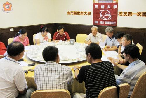金門縣世新大學校友會即將於九月十一日正式成立大會,籌備處暫時設置於金城鎮民生路43號11樓,連絡電話為(082)320111,歡迎世新校友加入會員。 金門縣世新大學校友會發起人暨第一次籌備會於日昨召開,籌備會由主任委員李錫回主持,校友李錫隆等十八人參與會議,會中針對即將成立的金門世新大學校友會踴躍發言,提出了很多寶貴的意見。 籌備會主任委員李錫回致詞表示,世新大學從專科時代到學院乃至目前改制為綜合大學都有優良的歷史及傳統,雖然他離開學校已二三十年,但是到現在仍然很懷念昔日在世新大學求學的點滴,在金門,世新大學有為數甚多的校友散布在各個領域,不管士農工商,大家都有相當傑出的表現,醞釀成立校友會的構想已有一段很長的時日,今天能夠召開發起人暨第一次籌備會要特別感謝許乃蠡等校友大力的奔走,目前校友會已獲縣政府主管單位函復同意成立。他也樂見金門世新大學校友的團結、扶助,並希望日後校友會成立後除了提供校友聯誼以外也能對社會有所貢獻。 會中並推選李錫回、許乃蠡、陳國興、莊育民、顏恩威、鄭琪云、陳滄江等七人為籌備會委員,李錫回為籌備會主任委員,陳滄江為執行秘書、鄭琪云為會務組長。