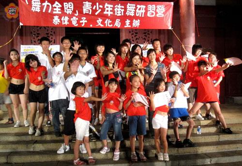 由金門縣文化局與泰偉電子聯合主辦的「舞力全開」街舞研習營經過五天的研習課程後,日昨晚間假金城鎮總兵署前廣場擴大舉辦成果發表聯歡晚會,文化局長李錫隆、金城鎮長石兆瑉以及泰瑋電子主任均到場參與,並頒發結業證書予每位學員,對學員認真學習舞蹈舞出自我稱讚有加,並大力推崇街舞運動期許能夠帶領起年輕人運動的風潮。 本次研習泰偉電子也特別致贈每位學員一件精美的polo衫作為參與街舞研習的紀念品,並由李依文老師於課堂當中現場教學DIY創意製作潮服,成品也於成果當天作為每組表演的服裝,每位學員各個獨具創意發想穿出屬於自己的流行。 表演當晚吸引將近兩百多人到場觀看,每位學員拿出無比的自信在台上賣力的演出,展現美式嘻哈的帥氣以及性感嫵媚的爵士兩種截然不同的舞風,獲得台下觀眾滿堂喝采。更有各隊加油團高舉海報、加油牌為台上熱情舞動的學員大聲歡呼、加油打氣。 研習營授課講師也是晚會主持人李依文老師表示,金門的學生認真練習的程度不輸台灣的孩子,只是可惜在地缺乏這樣的資源讓他們繼續學習流行舞蹈,盼政府能夠多重視青少年流行文化進而促進學子參與動態運動,並希望有機會能夠多回來金門傳承這樣的流行街舞文化,讓金門注入青春活力與熱情。同時也藉由舉辦這樣的活動豐富孩子的暑假生活,讓孩子培養自信並盡情揮灑青春熱情與活力。