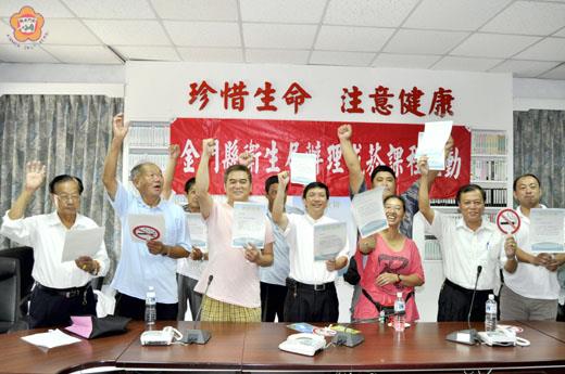 陳麗妤/圖文 衛生局辦理戒煙課程活動,二十位戒煙者在親友見證下進行宣誓,要為了家人和自己的健康戒煙。衛生局表示,課程將利用八月份每週週六上課,連續三週及三個月戒煙成功者將有獎勵。 衛生局戒煙課程始業式,二十位戒煙者簽名並宣誓即起展開戒煙行動,呂光浯已成功戒煙五年多,現身說法激勵戒煙者,他指出,恆心、毅力最重要,為了健康要堅持到底,用運動轉換戒煙念頭,成功戒煙可以省荷包及讓身體更健康和建立良好人際關係。