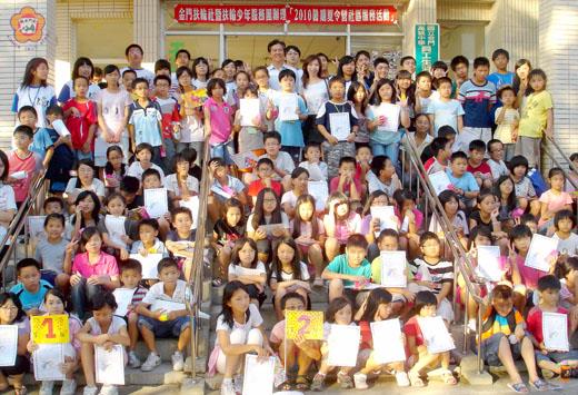 由金門扶輪社暨扶輪少年服務團辦理的「2010年暑期夏令營社區服務」活動在金門高中藝文中心展開,地區將近120位國小三、四、五、六年級小朋友在扶少團小隊輔及工作人員的帶領下,分組展開各項團康遊戲、闖關活動、舞蹈練習、帶動唱,藉由活動讓國小學童有個充實暑假生活,並將扶少團服務的精神傳達給學員們,讓學員發揮扶輪精神「進來學習、出去服務」理念,將服務熱忱延伸到校園,培養國小兒童拓展視野,以培養參加人員相互關懷與合作無間的團隊精神。 這項2010年暑期夏令營活動,係由金門高中學務處輔導,金門高中扶少團主辦、金門扶輪社協辦,一連二天在金門高中藝文中心展開,在扶少團總召集人黃彥瑋、洪千淳等30餘位工作人員帶領下,分組展開各項歌曲帶動唱、舞蹈練習、分組及闖關遊戲(呼拉圈傳遞+打電話+乒乓球+傳球+夾豆子+支援遊戲+滔水遊戲+細胞分裂+袋鼠跳+三人四腳+青蛙跳水)、話劇表演、化妝扮演、隊呼、機智問答、製作父親卡+水球活動等一連串的活動,金門地檢署檢察官也分別作法律常識宣導,並贈送小朋友許多獎品,讓學員很快的從陌生變成融洽,原本羞澀的小朋友都變得活潑開朗,勇於表演。活動並於日昨劃下圓滿句點。 金門高中校長蔡錦杉、訓育組長黃主真、指導老師張序伯、金門扶輪社社長李月黎、前社長李麗端、前社長李松財等人均到場關心致意,希望透過這項活動讓前來參加夏令營同學有個充實暑假生活,並將扶少團的精神傳達給其他同年齡的夥伴們,也讓學員認識一些新朋友以及瞭解互助、合作的重要性,以培養夥伴們相互關懷與合作無間的團隊精神。金門高中扶少團指導老師張序伯指出,金門扶輪少年服務團(Interact Club)成立於民國87年,扶少團為學校一個服務社團由金門扶輪社輔導,專為各地區15到18歲的中學生而設的社團。