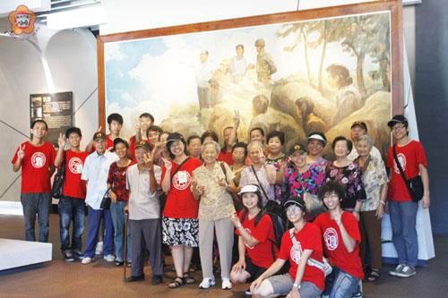 國立高雄師範大學「金城五」及「八達樓子」兩個教育部資訊志工隊,從七月十五日起進駐金門水頭地區longstay已半個月,服務地區遍及大小金門,早已和當地民眾融成一片,且對金門有著一份濃濃的金門情感。 為感恩金門鄉親的疼惜,這群「浯江紅衫客」特別於昨日與水調歌頭民宿主人顏湘芬聯合舉辦「阿公阿嬤環島一日遊」,以感恩社區長輩平日的照顧,回饋金門水頭鄉親,規劃參訪山后文化村、山外迎賓館並享用有名的成功鍋貼。全程有吃有玩完全免費,讓參與的鄉親長輩享受到一整天的溫馨感動。 促成此次活動的高師大李金鴦教授表示,雖然在離島擔任志工,但受到在地鄉親的照顧呵護更甚於所從事的服務工作,心存感恩之餘,這是對鄉親微不足道的回饋;況且藉由親近長輩聆聽金門的典故傳說,分享生命故事,一起歡唱一起說笑。 李金鴦說,讓彼此感受人情流動的溫暖,對這群大學生應是更有價值的學習;因此配合水調歌頭民宿主人顏湘芬的回饋社區計畫,高師大十二位師生用南台灣慣有的熱情與活力,陪伴這群可愛的長者,為長輩留影紀錄,說說笑笑開開心心渡過美好的時光。 擔任主持人的童軍團團長李佳融同學,在服務後深覺老人家實在「古錐可愛」,更反思平日與長輩相處太沒耐性,決定以後要好好珍愛自己的阿公阿嬤。他說,負責集合整隊的朱祐聰同學則說,以前都忽略長輩有許多美好的人生經歷可以分享及學習,經由此次活動,方知為何古人說「不聽老人言,吃虧在眼前」的道理。