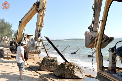 2010金廈海域泳渡活動即將在八月上旬登場,位於小金門上岸地點的雙口海灘,昨天展開移除反登陸防禦工事軌條砦,預定今日即可完成移除作業,為確保兩岸泳渡選手安全。 金門縣政府和廈門市人民政府合辦的金廈海域泳渡活動,預定八月八日舉行,由兩岸各五十名泳渡選手自大陸廈門椰風寨海灘下水,游向直線距離約六千公尺的小金門的雙口海灘。 由於小金門的雙口海灘上密佈國軍反登陸防禦工事的軌條砦,可能危及參與泳渡選手的安全。經金門縣政府與軍方協調,獲得同意暫時移除上岸點二百公尺長的軌條砦,配合活動舉辦。 移除軌條砦作業,是在昨下午展開,僱用的兩輛挖土機,開挖規劃上岸點的軌條砦及進行移除工作,其整個作業據承商表示,預定今日在一天的作業,即可順利成移除作業,在2010金廈海域泳渡活動結束後,再行恢復原狀。