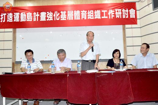 行政院體育委員會從今年至民國一○二年推動四年的「改善國民運動環境與打造運動島計畫」,以營造優質運動環境、推廣全民運動以促進國民健康體能,昨日並由體委會全民運動處副處長何台棟率員抵金與地區體育會下社團及體育界人士舉行「強化基層體育組織工作研討會」,希望共同來協助推動社區民眾積極參與運動,打造健康運動島。 「九十九年打造運動島計畫強化基層體育組織工作研討會」昨日下午在縣立體育場視聽室舉行,由縣府教育局長李再杭代表縣長李沃士主持,體委會全民運動處副處長何台棟、會計主任丁再興、執行中心執行長牟鐘福教授、副執行長李永山校長、縣議員唐麗輝,及縣府教育局課長許能麗、體育場場長許換生、金門技術學院學務長董燊(體委會金門訪視委員)、金城國中校長楊瑞松、體育會秘書長辛雷達,及各鄉鎮公所、學校、體育會下各單項運動委員會(協會)、地區身心障礙協會代表到場參與。 縣府教育局長李再杭也代表縣長李沃士歡迎體委會撥空來金門指導,他說,體委會全民運動處近年對金門運動發展協助相當多,與縣府合作愉快,而運動可以減少很多社會成本,持續性的運動可以減緩老化,讓身體更健康,也減少很多醫療與社會成本的支出,社會一定更祥和健康,提升競爭力。 李再杭也說,縣府也鼓勵各學校推動三三一運動,即每一次運動三十分鐘,一天看書閱讀三十分鐘,一天做一件善事。相信這樣持續下去,社會一定非常祥和健康。而國民的身體健康,競爭力自然提升。 他也指出,體委會打造運動島計畫當中很多項目,比如登山、游泳、健走,這些活動地區輕易可以做得到。而金門海泳運動希望未來體委會也能給予補助,對於活動會有幫助。金門對於體委會補助預算都是一元當作二元來用,對於體委會推動的政策,縣府也願意來配合,並責成體育場來落實。 李再杭也說,縣府也鼓勵許多身心障礙朋友走出來,走向人群,從事休閒運動,以提升身體機能,對身體健康會有幫助,並能減少家人照顧的壓力。 何台棟副處長也感謝縣府對於體委會的支持,許多運動政策順利來推動,此次來金門就是瞭解地方對於打造運動島計畫具體落實情形,聽聽大家在執行上的意見,並說明怎樣去推動、爭取經費、經費的核定與核銷等,協助大家解決問題。 議員唐麗輝感謝體委會來金瞭解金門推動全民運動的困境,她說,離島休閒活動不多,大家已經竭盡所能的運用人力資源,但仍需要政府的資源挹注。這幾年來,體委會在全民運動上著力很深,可是畢竟無法面面俱到,無法完全滿足大家的需求,離島運動方面地方也經營得很辛苦,大家僅憑著對於運動的熱愛來做這樣的活動,希望體委會的長官來,對金門的體育發展有所益處,並期盼體委會以後在全民運動區塊上能多多協助與鼓勵,帶動金門的人潮與休閒活動,這才是金門之福。 何台棟副處長指出,體委會打造運動島計畫也頒佈了,說明會也開了,許多縣市還不知道,沒有提出申請,現在已經七月,年度已經過了一半了,執行率只有百分之二十,戴主委非常重視全民運動,特別指示同仁要再走一趟親自與各縣市體育界溝通。
