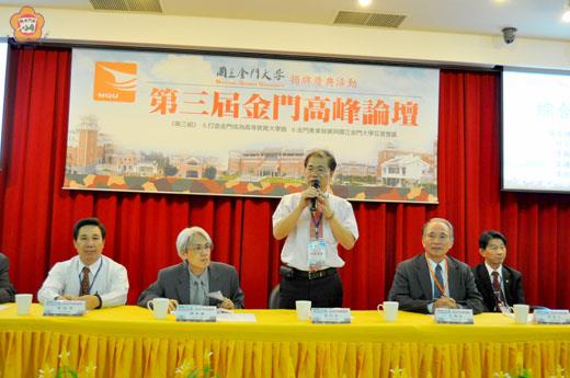「2010年第三屆金門高峰論壇」,其中第三組以「打造金門成為高教大學島」、「金門產業發展與國立金門大學互惠雙贏」為主題,與會學者教授共凝聚智慧,為打造「大學島」願景,共謀良策。 由國立金門技術學院創校校長黃廣志主持第三組論壇,發言包括有教育部高教司長何卓飛、縣教育局長李再杭、金門技術學院創辦人黃廣志、台南科技大學講座教授兼生活科技學院院長李寧遠、縣建設局長李增財、金酒公司副總游鴻程、金技學院教授李欣玫、鄭秋予等多人。 高教司長何卓飛十分認同縣府推展大學島概念,但他認為,金門應扶助的是優質、國際化,可以與世界接軌的名校,而非吸引很多大學來設校。 何卓飛主張,教育部應打破94年國立大學「凍結」增加師資的規定,以金門大學而言,目前師資不足,應予儘速增補至足夠的師資,才足以與其他大學競爭及凸顯在地金門特色。他並建議縣府集中資源扶植優秀大專院校,以提高金門大學能見度。 與會學者提出,金門具有地位優勢,應結合世界各大學核心優點,俾與知名大學競爭,在世界發光發亮,進而提升學術聲譽與位階;學者們舉例,廈大擁有華僑研究中心,但卻對金門海外華僑研究匱乏,事實上,金門海外華僑為數相當多,更值得深入研究,發揮其核心優點。 談及產官學合作,與會學者教授認為,金酒公司是金門企業界的龍頭,金門大學應配合其產業需求培育相關研發人才,同時建議金酒公司與金門大學建立共同聯合研究中心,雙方在產學策略聯盟的合約下,可以很有效的應用此優勢,落實資源共享。 學者教授們舉例,有人以同樣設備製金門高粱酒,其口感卻與金酒公司無法相比,因其中涉及原物料、氣候等等因素,這些都可以透過具有研發能力的研究員進行分析探討,所以建議金酒公司與金門大學建立產官學合作,將來甚至在廢氣、酒糟,也可研發開創出另一附加價值與技術,創造雙贏。