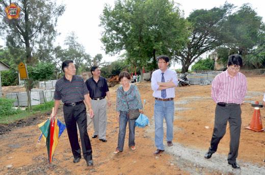 金城鎮代表會第九屆第二十次臨時會昨下鄉勘察地方重要建設行程,代表會主席陳天成等人在鎮長石兆瑉陪同下實際勘察鳳翔社區環境改善等各項地方基層建設,瞭解亟需改善的問題,石鎮長鼓勵民眾全民督工,只要發現規劃設計不周、工程執行情況不良、工程安全措施不足等等,可反映鎮公所處理,讓工程品質得到最大保障。 金城鎮代表會本屆臨時會是最後一次會議,上午九時卅分金城鎮代表會主席陳天成率領代表郭永隆、張含麗等人,在鎮長石兆日及主秘黃耿銘陪同下,逐一踏勘各項工程建設。代表們第一站勘察西門里鳳翔社區週邊環境美化改善(第二期)工程,這項工程於去年十月廿日開標,預定220日曆天完工,工程內容主要是台電預埋管線354公尺、給水管線埋設230戶與排水暗溝,路面地坪鋪花崗石,周邊種植四季花草、桂花、杜鵑花共900株。 第二站走訪庵前牧馬侯祠戲台新建工程,該項工程所需經費四百多萬元由縣府九十八年施政計畫-鄉村整建支付,預定二百個日曆天完工,工程內容規劃有地上二層建築物及周邊環境景觀工程。文台古塔周邊環境美化工程位於古城里,工程進行花崗石地坪鋪設,鋪面有一棵木麻黃妨礙工程施作,承包廠商建請林務所會勘移除。